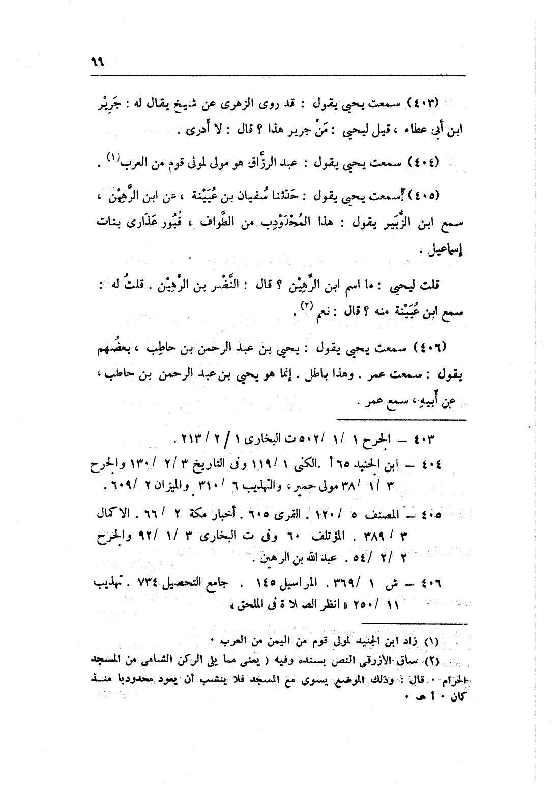 405 - سَمِعت يحيى يَقُول حَدثنَا سُفْيَان بن عُيَيْنَة عَن بن الرهين سمع بن الزبير يَقُول هَذَا المحدودب من الطّواف قُبُور عذارى بَنَات إِسْمَاعِيل قلت ليحيى مَا اسْم بن الرهين قَالَ النَّضر بن الرهين قلت لَهُ سمع بن عُيَيْنَة مِنْهُ قَالَ نعم