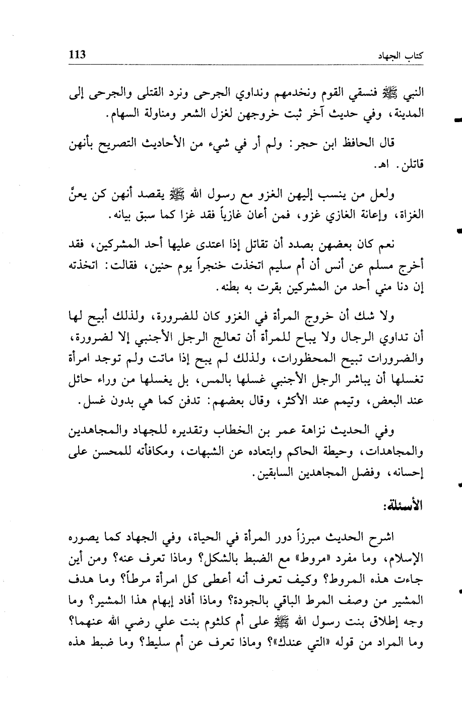 النبي صلى الله عليه وسلم فنسقي القوم ونخدمهم ونداوي الجرحى ونرد القتلى والجرحى إلى المدينة وفي حديث آخر ثبت خروجهن لغزل الشعر ومناولة السهام