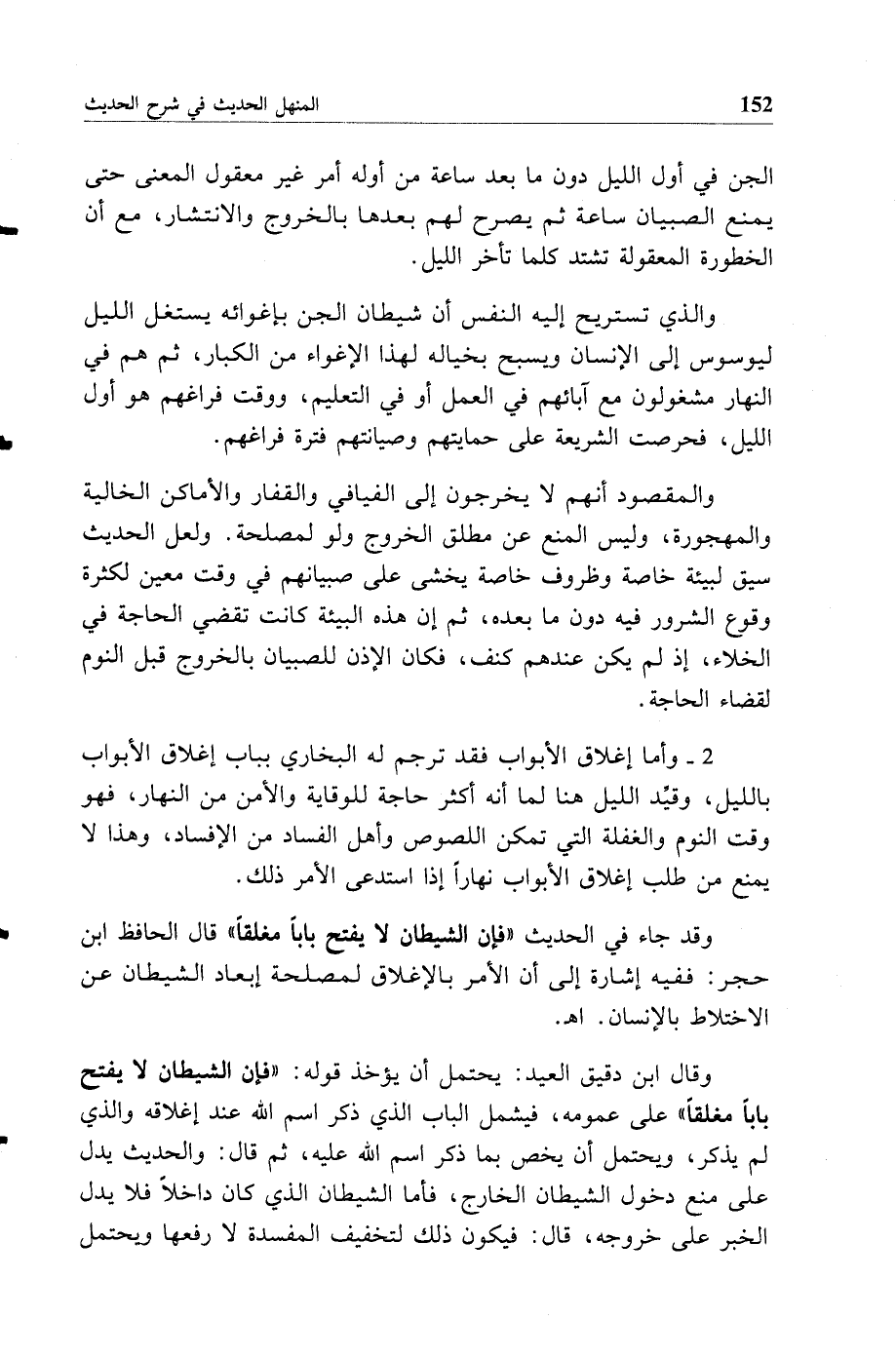 وقد جاء في الحديث فإن الشيطان لا يفتح بابا مغلقا قال الحافظ ابن حجر ففيه إشارة إلى أن الأمر بالإغلاق لمصلحة إبعاد الشيطان عن الاختلاط بالإنسان أهـ