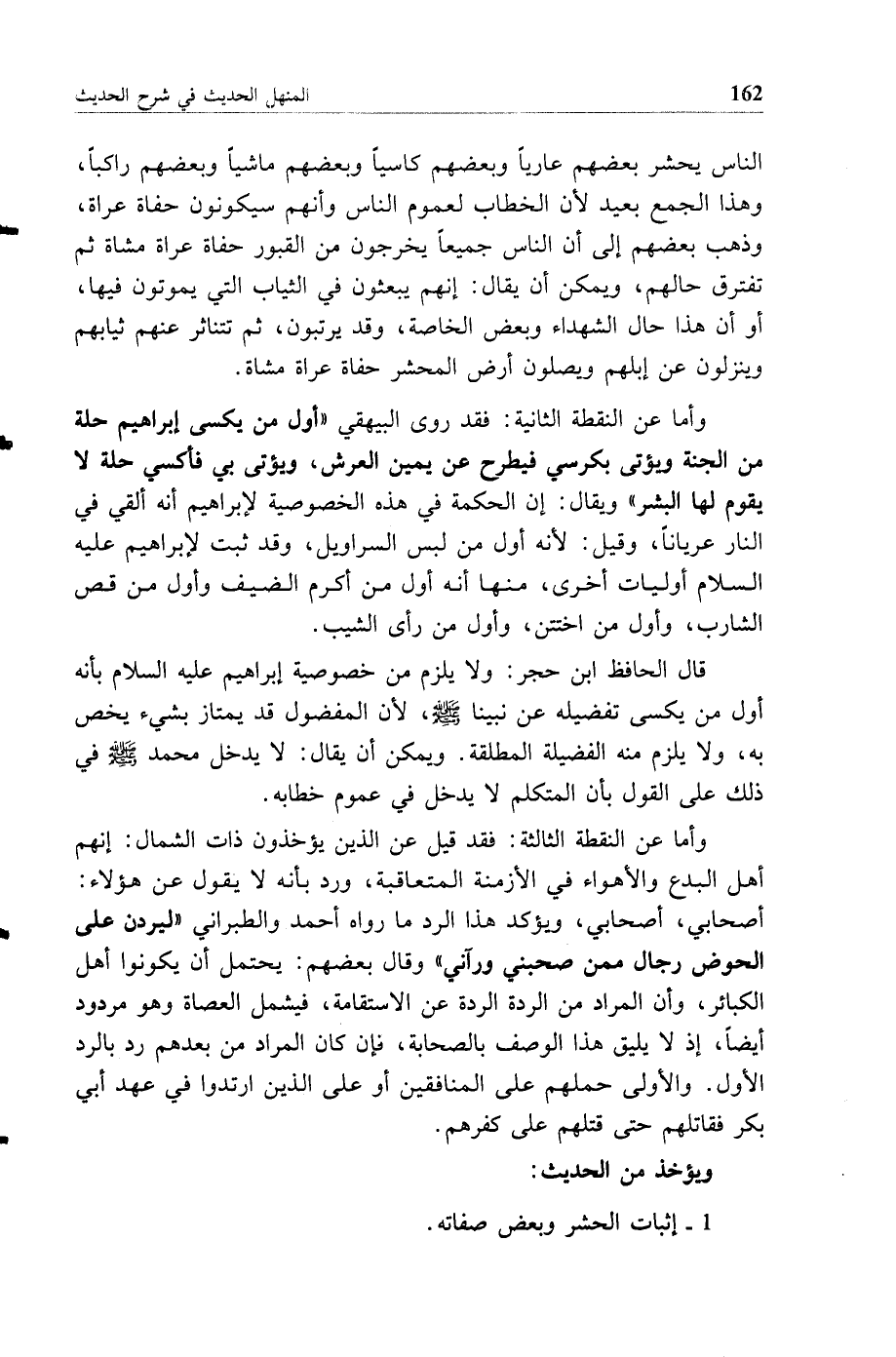 وأما عن النقطة الثالثة فقد قيل عن الذين يؤخذون ذات الشمال إنهم أهل البدع والأهواء في الأزمنة المتعاقبة ورد بأنه لا يقول عن هؤلاء أصحابي أصحابي ويؤكد هذا الرد ما رواه أحمد والطبراني ليردن علي الحوض رجال ممن صحبني ورآني وقال بعضهم يحتمل أن يكونوا أهل الكبائر وأن المراد من الردة الردة عن الاستقامة فيشمل العصاة وهو مردود أيضا إذ لا يليق هذا الوصف بالصحابة فإن كان المراد من بعدهم رد بالرد الأول والأولى حملهم على المنافقين أو على الذين ارتدوا في عهد أبي بكر فقاتلهم حتى قتلهم على كفرهم