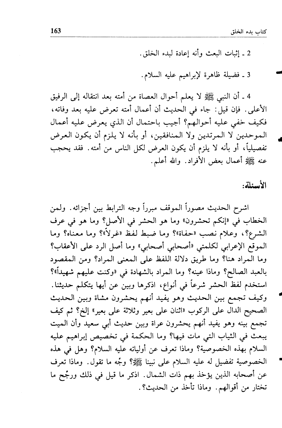 4 - أن النبي صلى الله عليه وسلم لا يعلم أحوال العصاة من أمته بعد انتقاله إلى الرفيق الأعلى فإن قيل جاء في الحديث أن أعمال أمته تعرض عليه بعد وفاته فكيف خفي عليه أحوالهم أجيب باحتمال أن الذي يعرض عليه أعمال الموحدين لا المرتدين ولا المنافقين أو بأنه لا يلزم أن يكون العرض تفصيليا أو بأنه لا يلزم أن يكون العرض لكل الناس من أمته فقد يحجب عنه صلى الله عليه وسلم أعمال بعض الأفراد والله أعلم