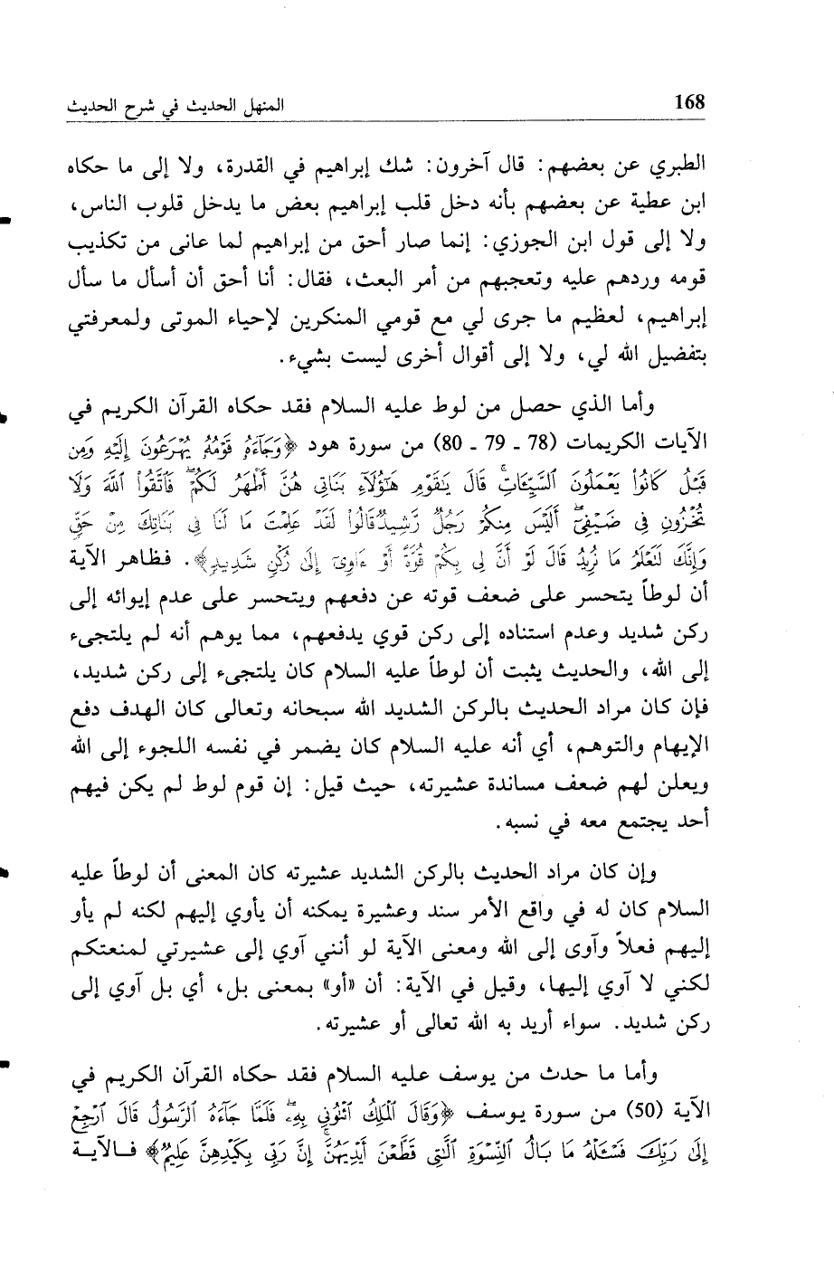 وإن كان مراد الحديث بالركن الشديد عشيرته كان المعنى أن لوطا عليه السلام كان له في واقع الأمر سند وعشيرة يمكنه أن يأوي إليهم لكنه لم يأو إليهم فعلا وآوى إلى الله ومعنى الآية لو أنني آوي إلى عشيرتي لمنعتكم لكني لا آوي إليها وقيل في الآية أن أو بمعنى بل أي بل آوي إلى ركن شديد سواء أريد به الله تعالى أو عشيرته