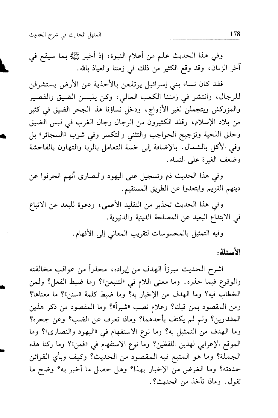 وفي هذا الحديث تحذير من التقليد الأعمى ودعوة للبعد عن الاتباع في الابتداع البعيد عن المصلحة الدينية والدنيوية