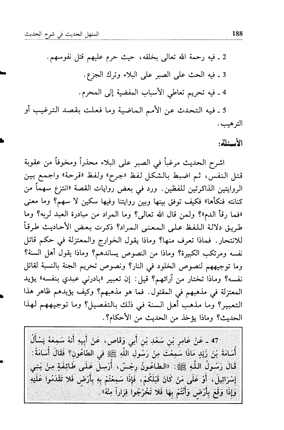 47 - عن عامر بن سعد بن أبي وقاص عن أبيه أنه سمعه يسأل أسامة بن زيد ماذا سمعت من رسول الله صلى الله عليه وسلم في الطاعون فقال أسامة قال رسول الله صلى الله عليه وسلم الطاعون رجس أرسل على طائفة من بني إسرائيل أو على من كان قبلكم فإذا سمعتم به بأرض فلا تقدموا عليه وإذا وقع بأرض وأنتم بها فلا تخرجوا فرارا منه