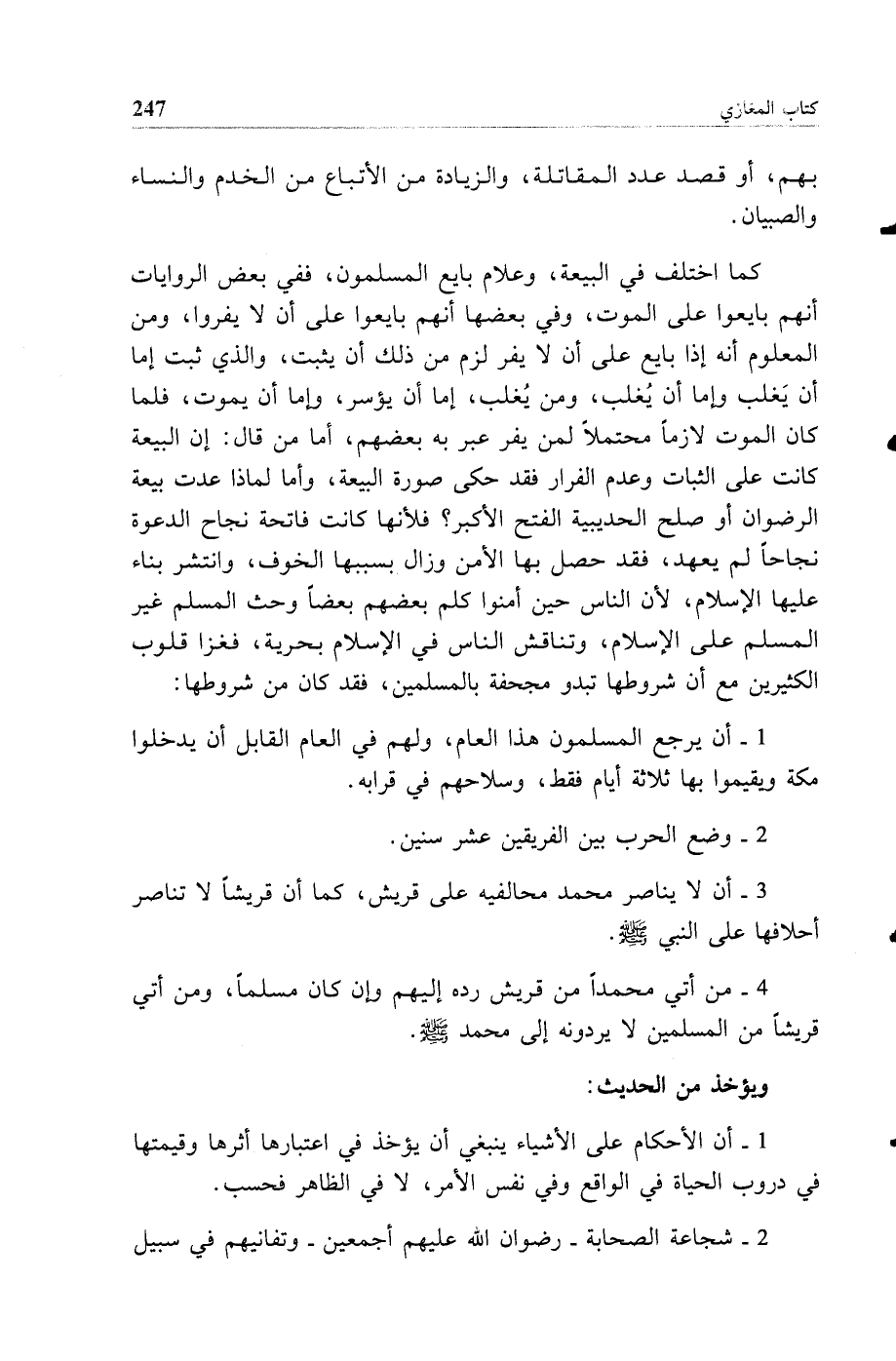 1 - أن يرجع المسلمون هذا العام ولهم في العام القابل أن يدخلوا مكة ويقيموا بها ثلاثة أيام فقط وسلاحهم في قرابه
