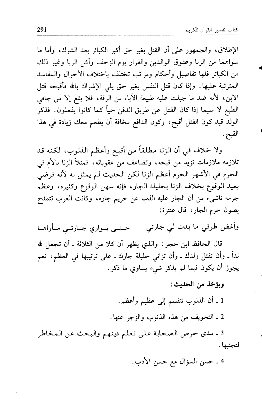 قال الحافظ ابن حجر والذي يظهر أن كلا من الثلاثة أن تجعل لله ندا وأن تقتل ولدك وأن تزاني حليلة جارك على ترتيبها في العظم نعم يجوز أن يكون فيما لم يذكر شيء يساوي ما ذكر