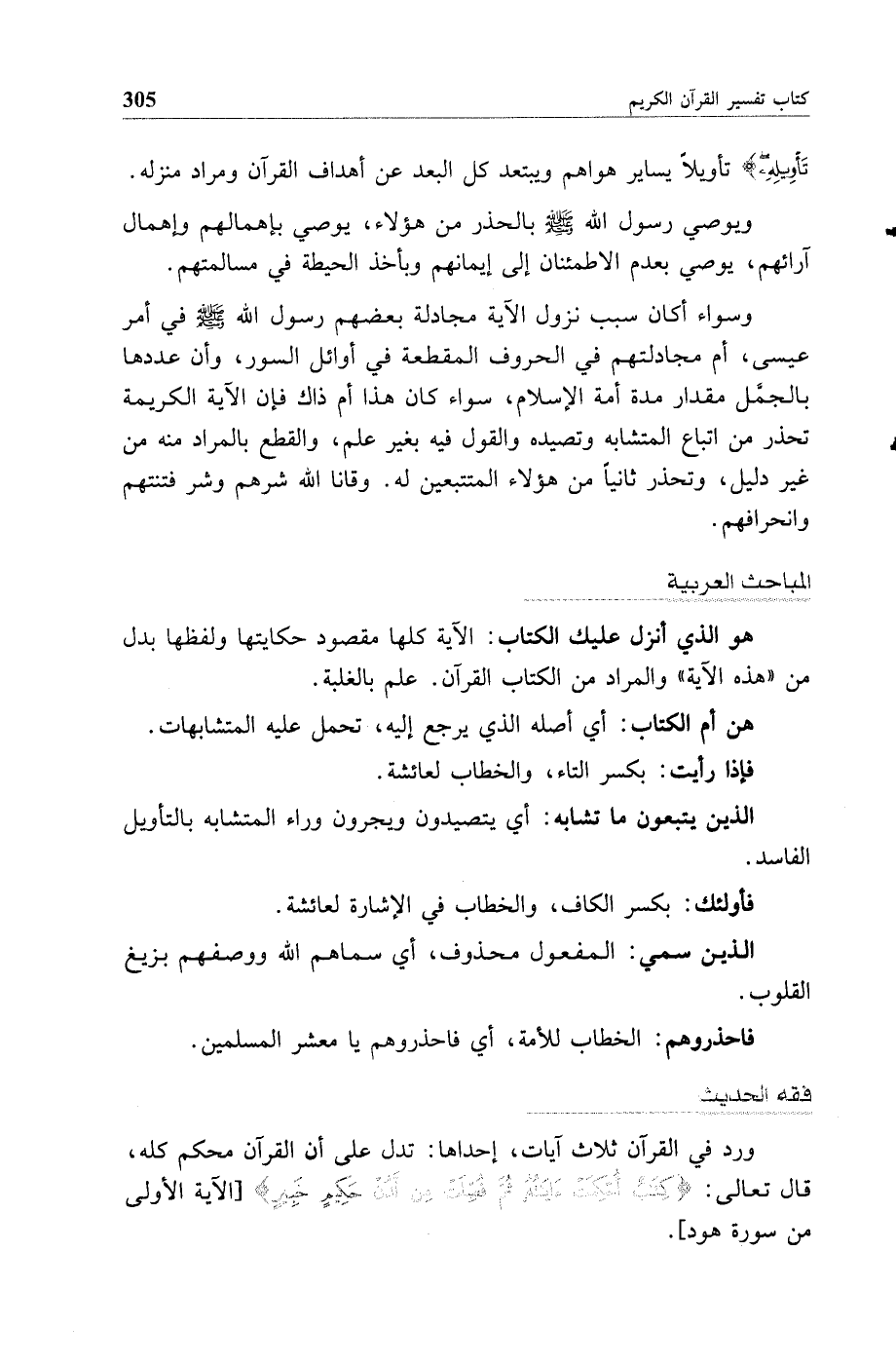 وسواء أكان سبب نزول الآية مجادلة بعضهم رسول الله صلى الله عليه وسلم في أمر عيسى أم مجادلتهم في الحروف المقطعة في أوائل السور وأن عددها بالجمل مقدار مدة أمة الإسلام سواء كان هذا أم ذاك فإن الآية الكريمة تحذر من اتباع المتشابه وتصيده والقول فيه بغير علم والقطع بالمراد منه من غير دليل وتحذر ثانيا من هؤلاء المتتبعين له وقانا الله شرهم وشر فتنتهم وانحرافهم