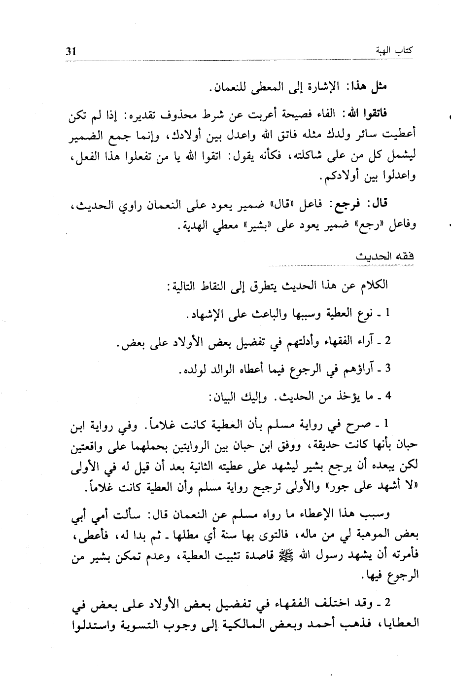 وسبب هذا الإعطاء ما رواه مسلم عن النعمان قال: سألت أمي أبي بعض الموهبة لي من ماله فالتوى بها سنة أي مطلها ثم بدا له فأعطى فأمرته أن يشهد رسول الله صلى الله عليه وسلم قاصدة تثبيت العطية وعدم تمكن بشير من الرجوع فيها