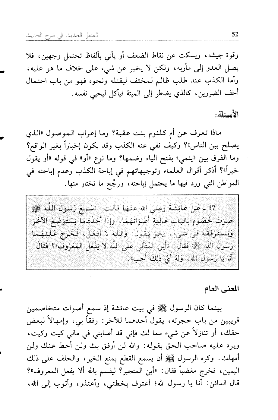 17 - عن عائشة رضي الله عنها قالت: سمع رسول الله صلى الله عليه وسلم صوت خصوم بالباب عالية أصواتهما وإذا أحدهما يستوضع الآخر ويسترفقه في شيء وهو يقول والله لا أفعل فخرج عليهما رسول الله صلى الله عليه وسلم فقال أين المتألي على الله لا يفعل المعروففقال أنا يا رسول الله وله أي ذلك أحب