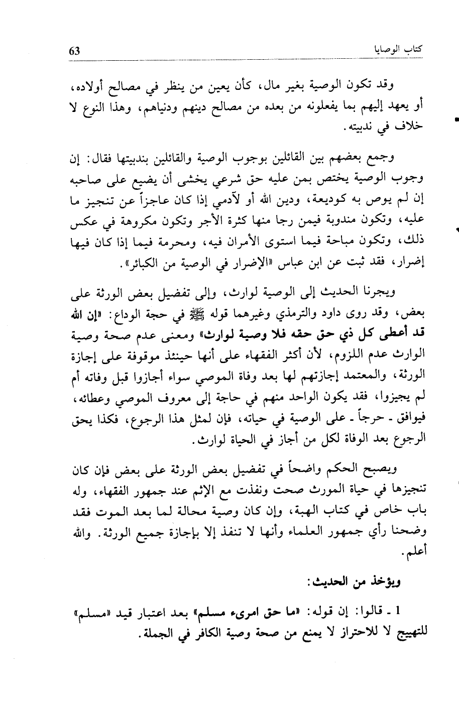 1 - قالوا إن قوله ما حق امرئ مسلم بعد اعتبار قيد مسلم للتهييج لا للاحتراز لا يمنع من صحة وصية الكافر في الجملة