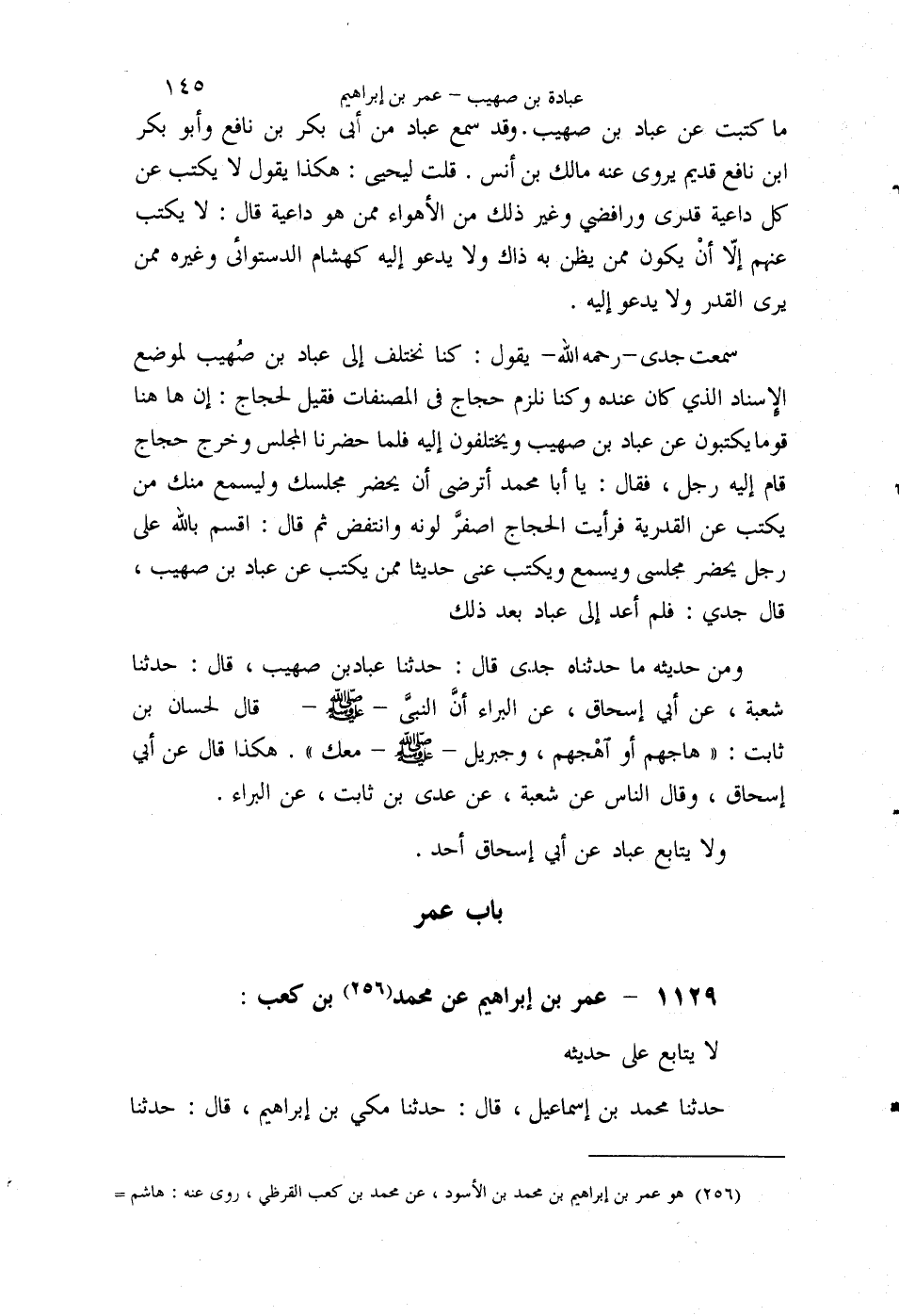 §1129 - عُمَرُ بْنُ إِبْرَاهِيمَ عَنْ مُحَمَّدِ بْنِ كَعْبٍ لَا يُتَابَعُ عَلَى حَدِيثِهِ