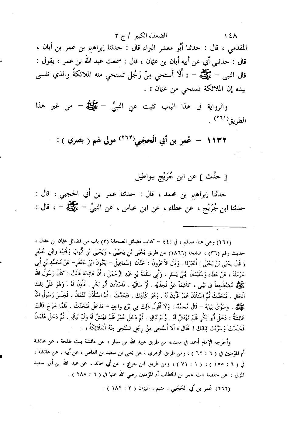 §1132 - عُمَرُ بْنُ أَبِي الْحَجَبِيِّ مَوْلًى لَهُمْ بَصْرِيٌّ حَدَّثَ عَنِ ابْنِ جُرَيْجٍ، بِبَوَاطِيلَ