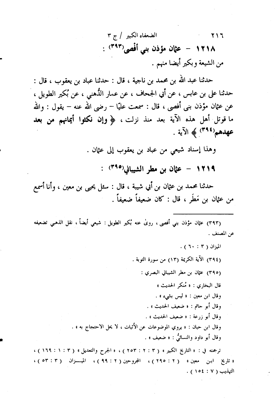 §1218 - عُثْمَانُ مُؤَذِّنُ بَنِي أَفْصَى مِنَ الشِّيعَةِ، وَبُكَيْرٌ أَيْضًا مِنْهُمْ