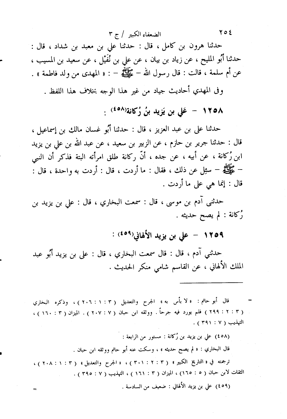 §1259 - عَلِيُّ بْنُ يَزِيدَ الْأَلْهَانِيُّ حَدَّثَنِي آدَمُ قَالَ: قَالَ: سَمِعْتُ الْبُخَارِيَّ قَالَ: عَلِيُّ بْنُ يَزِيدَ أَبُو عَبْدِ الْمَلِكِ الْأَلْهَانِيُّ عَنِ الْقَاسِمِ، شَامِيٌّ مُنْكَرُ الْحَدِيثِ