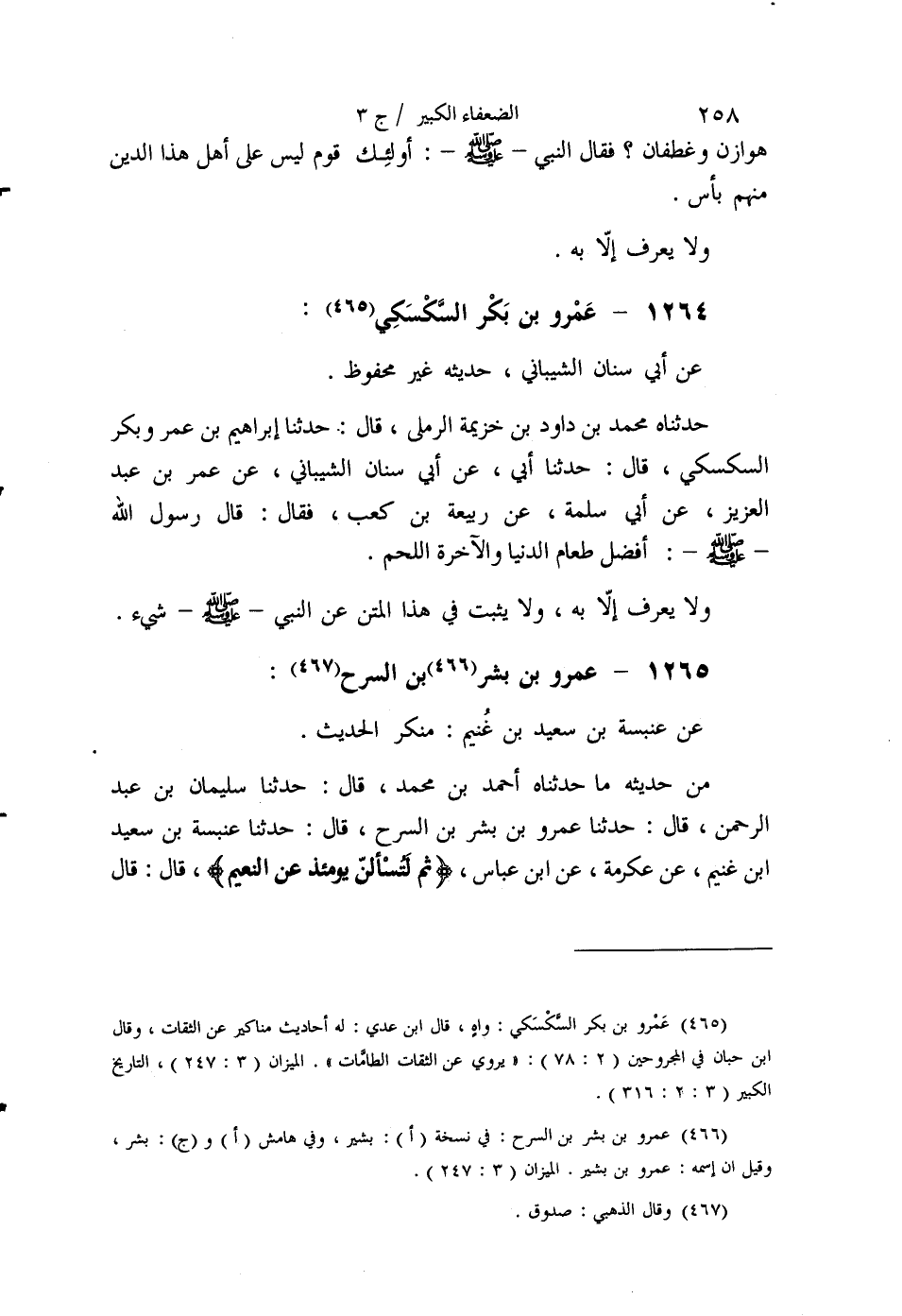 §1265 - عَمْرُو بْنُ بِشْرِ بْنِ السَّرْحِ عَنْ عَنْبَسَةَ بْنِ سَعِيدِ بْنِ غُنَيْمٍ، مُنْكَرُ الْحَدِيثِ