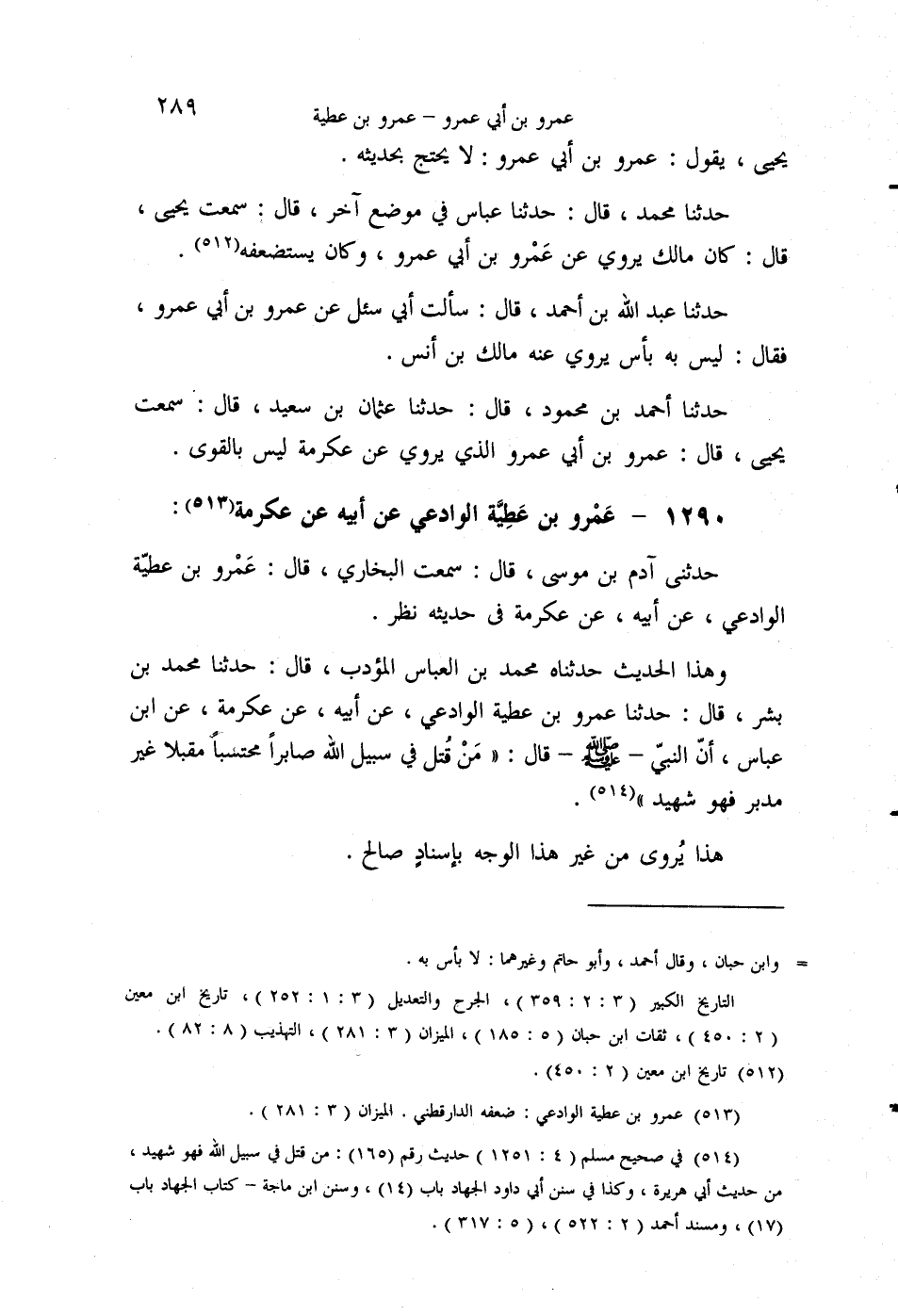 §1290 - عَمْرُو بْنُ عَطِيَّةَ الْوَادِعِيُّ عَنْ أَبِيهِ، عَنْ عِكْرِمَةَ. حَدَّثَنِي آدَمُ بْنُ مُوسَى قَالَ: سَمِعْتُ الْبُخَارِيَّ قَالَ: عَمْرُو بْنُ عَطِيَّةَ الْوَادِعِيُّ، عَنْ أَبِيهِ، عَنْ عِكْرِمَةَ، فِي حَدِيثِهِ نَظَرٌ