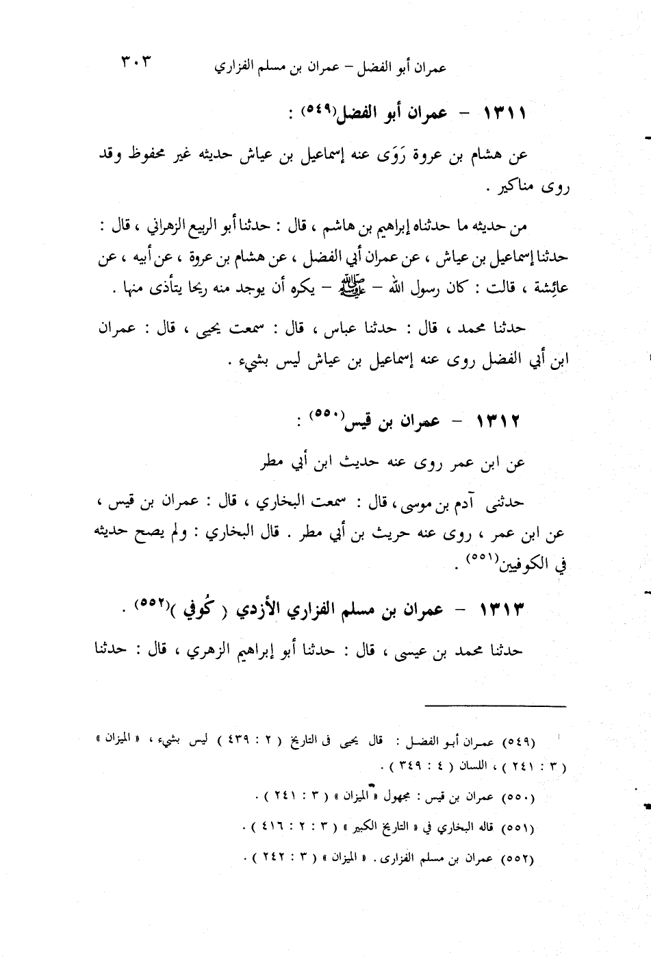§1311 - عِمْرَانُ أَبُو الْفَضْلِ عَنْ هِشَامِ بْنِ عُرْوَةَ، رَوَى عَنْهُ، إِسْمَاعِيلُ بْنُ عَيَّاشٍ، حَدِيثُهُ غَيْرُ مَحْفُوظٍ، وَقَدْ رَوَى مَنَاكِيرَ