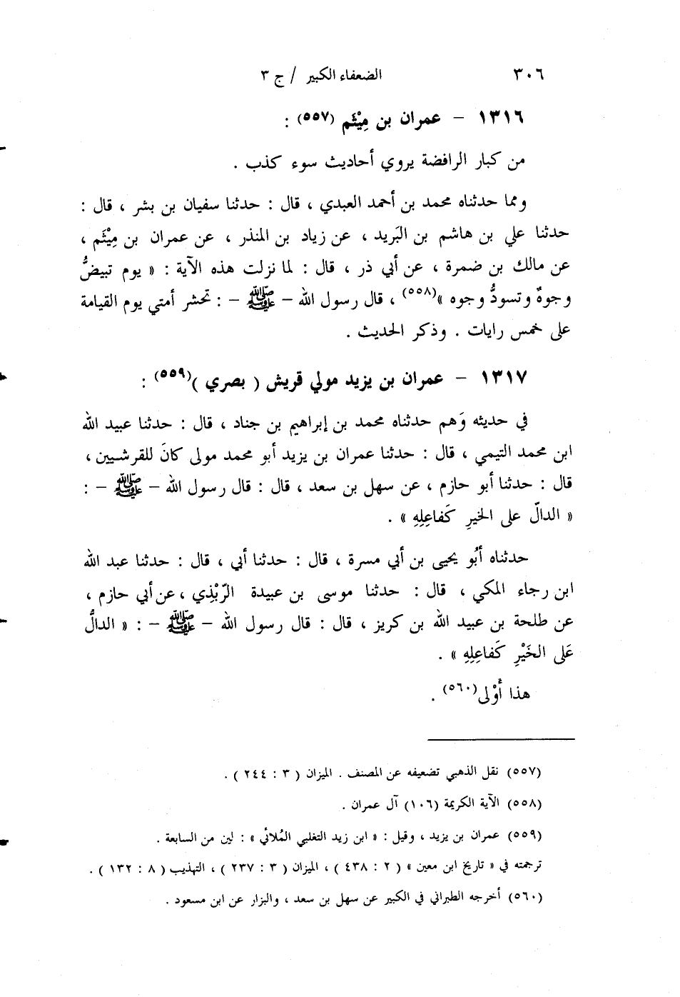 §1316 - عِمْرَانُ بْنُ مَيْثَمٍ مِنْ كِبَارِ الرَّافِضَةِ يَرْوِي أَحَادِيثَ سَوْءٍ كَذِبٍ