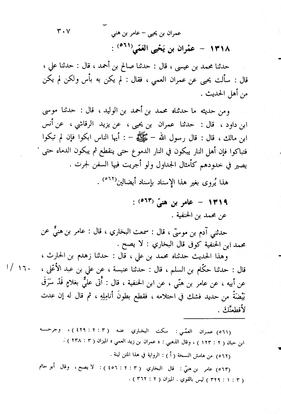 §1318 - عِمْرَانُ بْنُ يَحْيَى الْعَمِّيُّ حَدَّثَنَا مُحَمَّدُ بْنُ عِيسَى قَالَ: حَدَّثَنَا صَالِحُ بْنُ أَحْمَدَ قَالَ: حَدَّثَنَا عَلِيٌّ قَالَ: سَأَلْتُ يَحْيَى، عَنْ عِمْرَانَ الْعَمِّيِّ، فَقَالَ: لَمْ يَكُنْ بِهِ بَأْسٌ، وَلَكِنْ لَمْ يَكُنْ مِنْ أَهْلِ الْحَدِيثِ