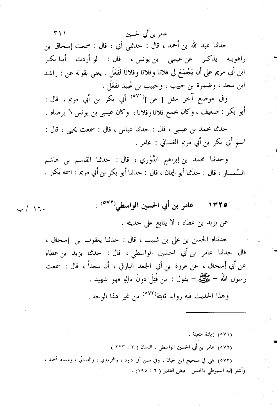 §1325 - عَامِرُ بْنُ أَبِي الْحُسَيْنِ الْوَاسِطِيُّ عَنْ يَزِيدَ بْنِ عَطَاءٍ، لَا يُتَابَعُ عَلَى حَدِيثِهِ