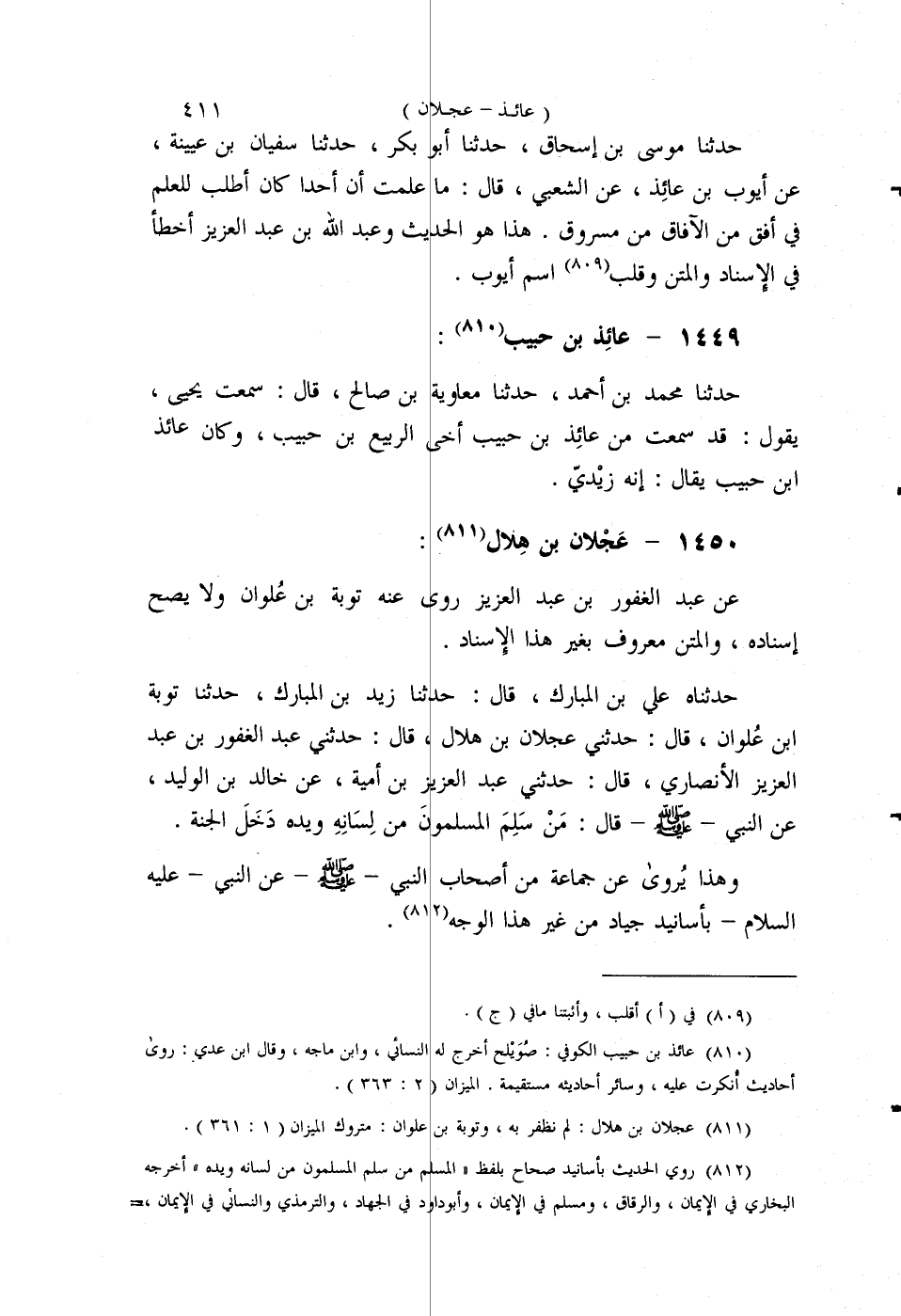 §1449 - عَائِذُ بْنُ حَبِيبٍ حَدَّثَنَا مُحَمَّدُ بْنُ أَحْمَدَ، حَدَّثَنَا مُعَاوِيَةُ بْنُ صَالِحٍ قَالَ: سَمِعْتُ يَحْيَى يَقُولُ: قَدْ سَمِعْتُ مِنْ، عَائِذِ بْنِ حَبِيبٍ أَخِي الرَّبِيعِ بْنِ حَبِيبٍ، وَكَانَ عَائِذُ بْنُ حَبِيبٍ يُقَالُ إِنَّهُ زَيْدِيُّ