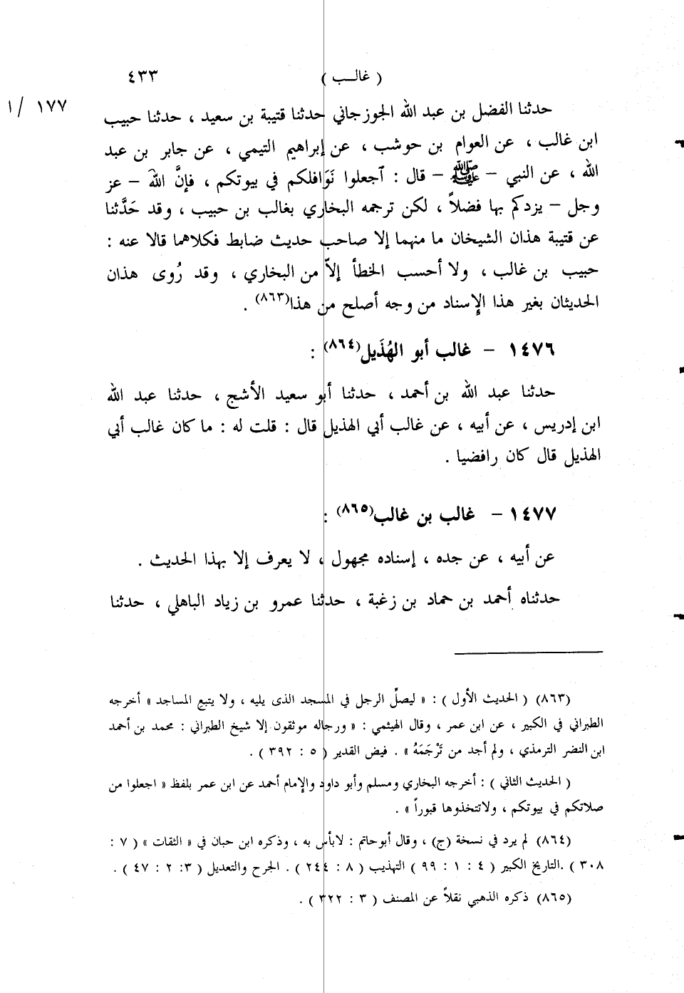 §1476 - غَالِبٌ أَبُو الْهُذَيْلِ حَدَّثَنَا عَبْدُ اللَّهِ بْنُ أَحْمَدَ، حَدَّثَنَا أَبُو سَعِيدٍ الْأَشَجُّ، حَدَّثَنَا عَبْدُ اللَّهِ بْنُ إِدْرِيسَ، عَنْ أَبِيهِ، عَنْ غَالِبٍ أَبِي الْهُذَيْلِ قَالَ: قُلْتُ لَهُ: مَا كَانَ غَالِبٌ أَبُو الْهُذَيْلِ؟ قَالَ: كَانَ رَافِضِيًّا