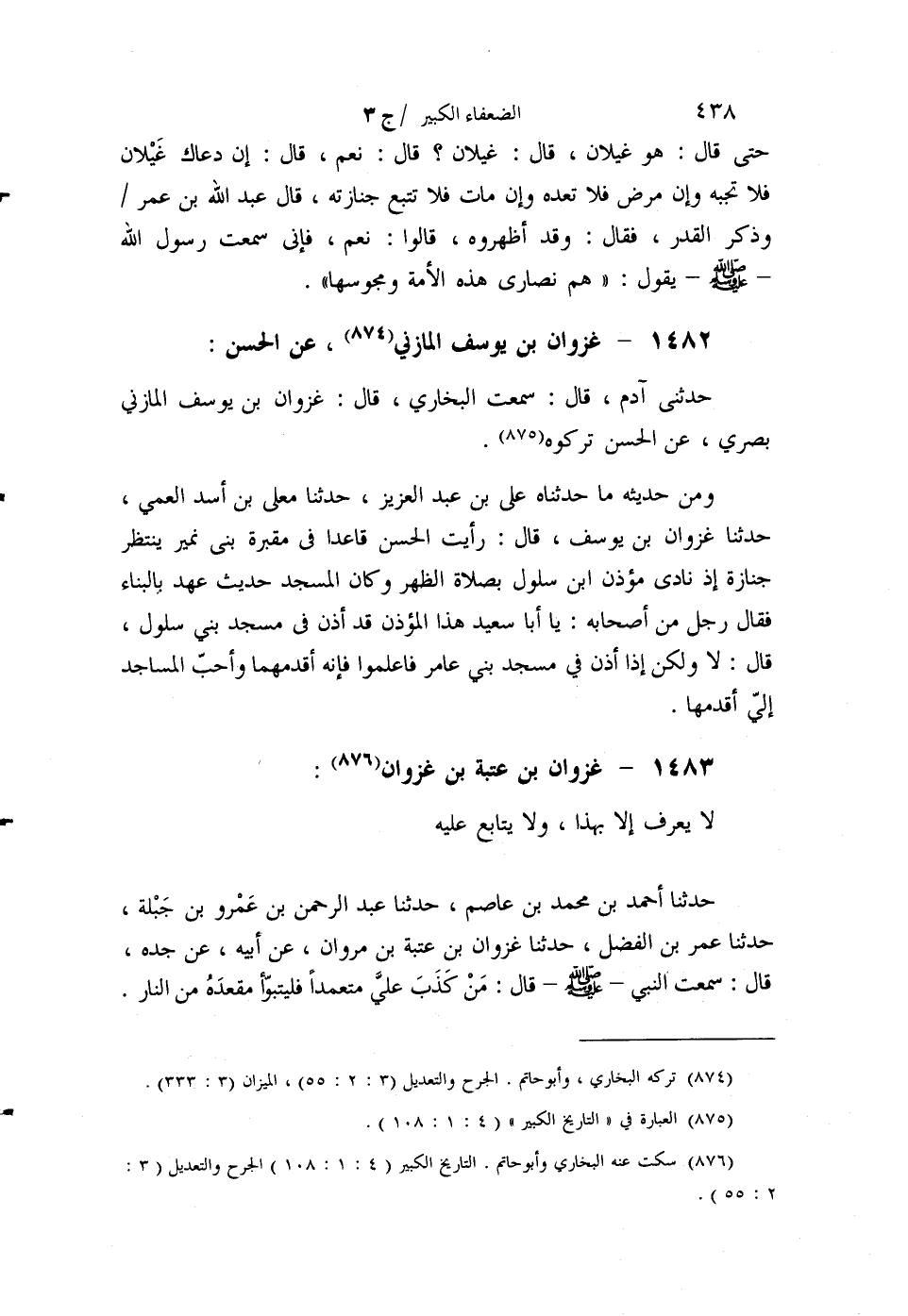 §1482 - غَزْوَانُ بْنُ يُوسُفَ الْمَازِنِيُّ عَنِ الْحَسَنِ. حَدَّثَنِي آدَمُ قَالَ: سَمِعْتُ الْبُخَارِيَّ قَالَ: غَزْوَانُ بْنُ يُوسُفَ الْمَازِنِيُّ بَصْرِيٌّ عَنِ الْحَسَنِ، تَرَكُوهُ