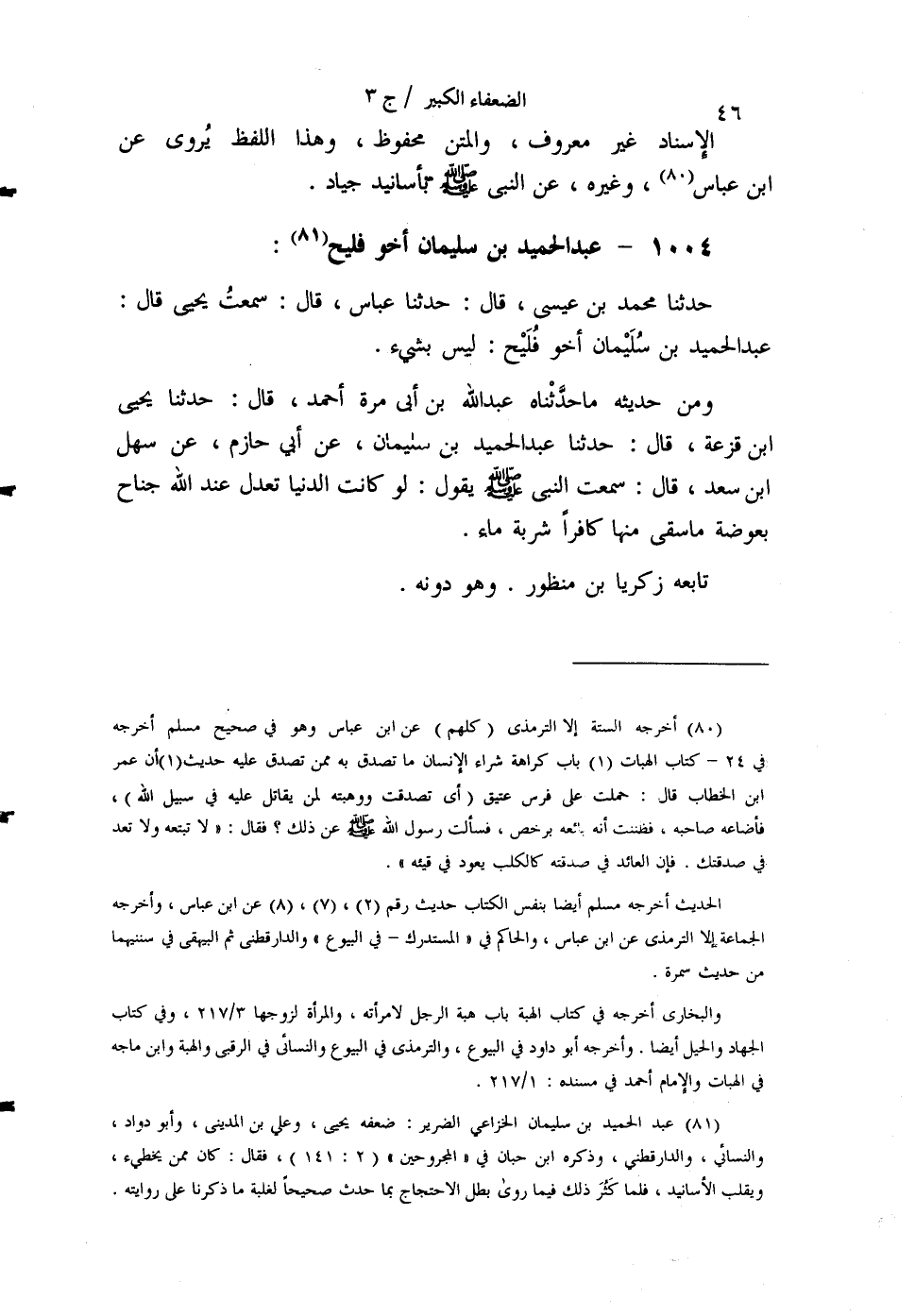 §1004 - عَبْدُ الْحَمِيدِ بْنُ سُلَيْمَانَ أَخُو فُلَيْحٍ حَدَّثَنَا مُحَمَّدُ بْنُ عِيسَى قَالَ: حَدَّثَنَا عَبَّاسٌ قَالَ: سَمِعْتُ يَحْيَى قَالَ: عَبْدُ الْحَمِيدِ بْنُ سُلَيْمَانَ أَخُو فُلَيْحٍ لَيْسَ بِشَيْءٍ