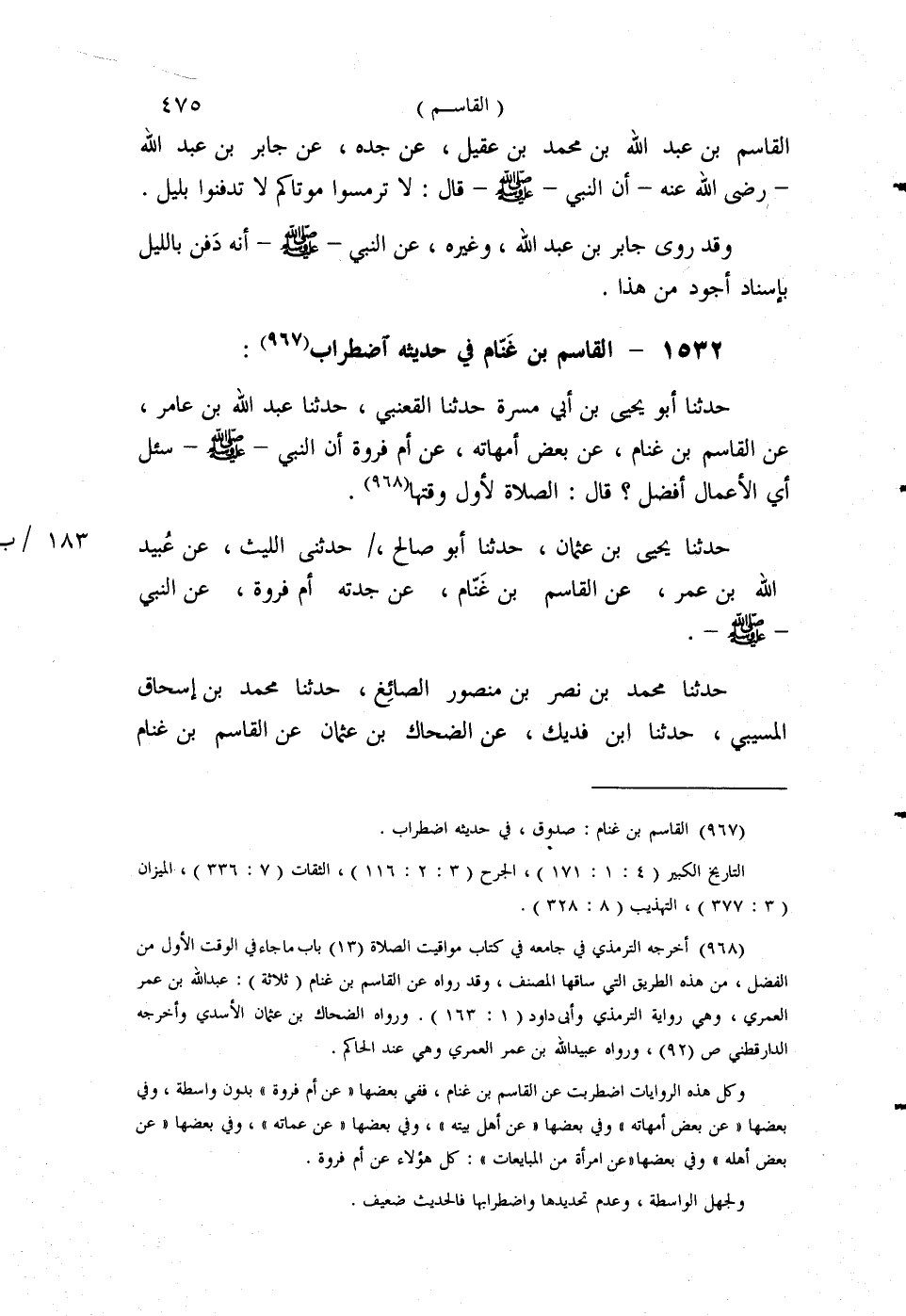 §1532 - الْقَاسِمُ بْنُ غَنَّامٍ فِي حَدِيثِهِ اضْطِرَابٌ