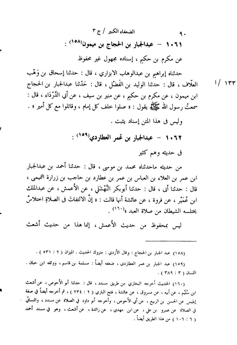 §1062 - عَبْدُ الْجَبَّارِ بْنُ عُمَرَ الْعُطَارِدِيُّ فِي حَدِيثِهِ وَهْمٌ كَثِيرٌ