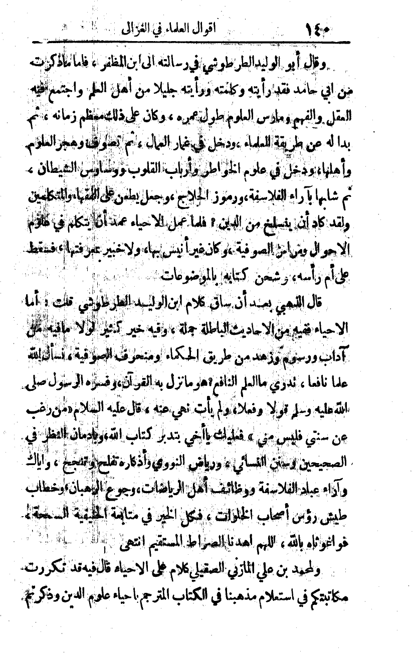 ولمحمد بن علي المازني الصقيلي كلام على الإحياء قال فيه: قد تكررت مكاتبتكم في استعلام مذهبنا في الكتاب المترجم بإحياء علوم الدين، وذكرتم