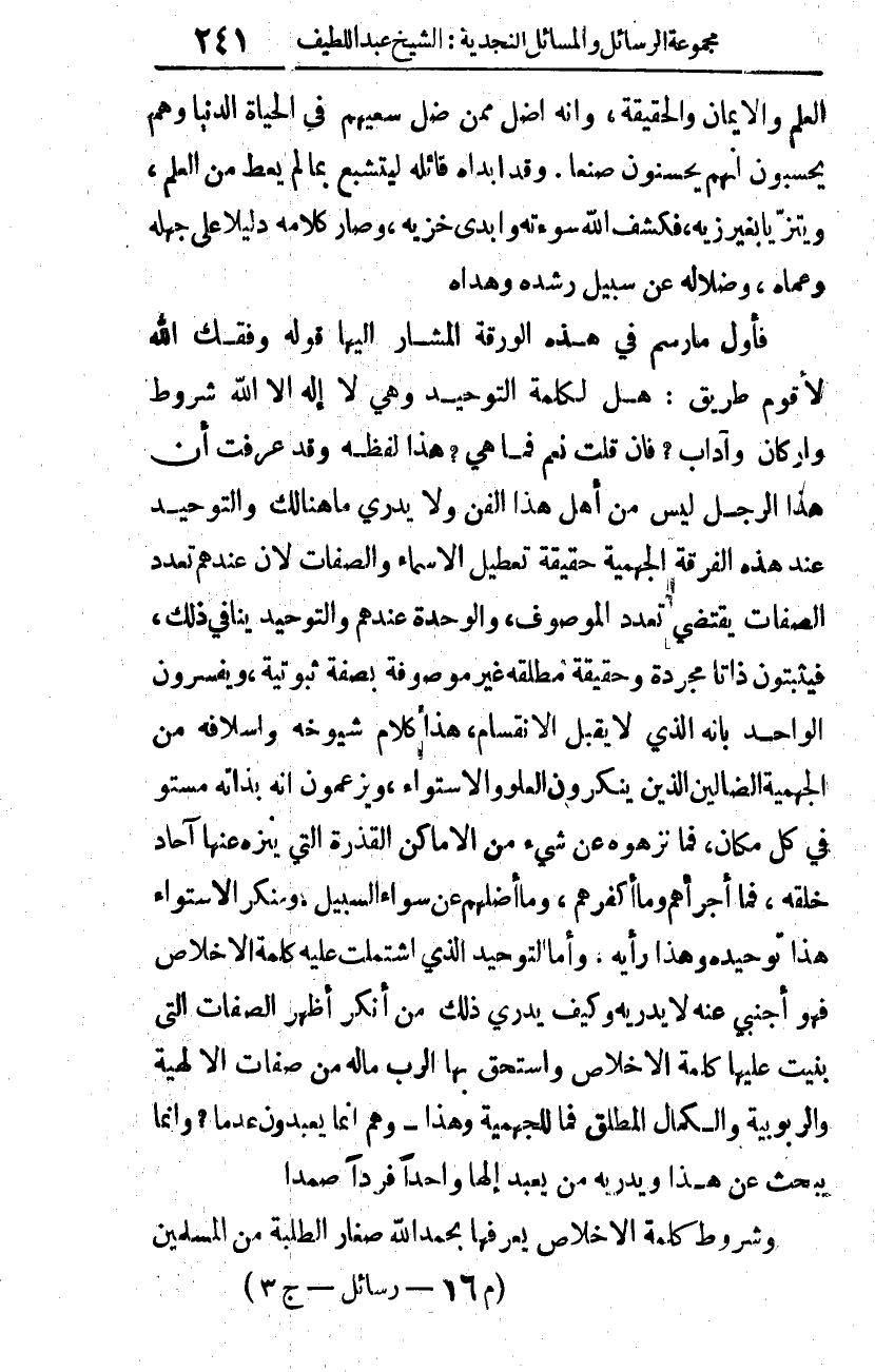 كتاب مجموعة الرسائل والمسائل النجدية (اسم الجزء: 3)
