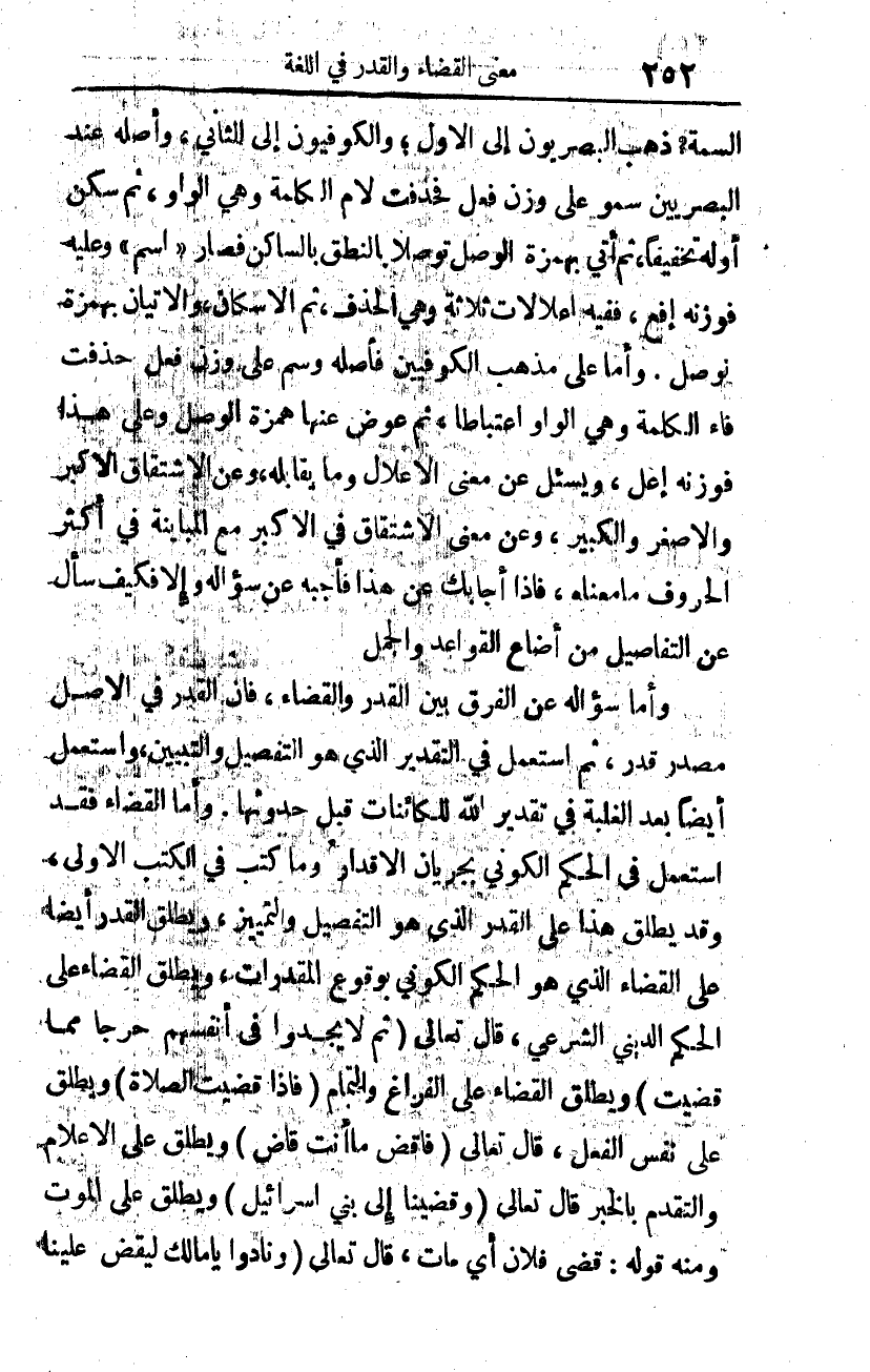 وأما سؤاله عن الفرق بين القدر والقضاء، فإن القدر في الأصل مصدر قدر، ثم استعمل في التقدير الذي هو التفصيل والتبيين، واستعمل أيضا بعد الغلبة في تقدير الله للكائنات قبل حدوثها. وأما القضاء فقد استعمل في الحكم الكوني بجريان الأقدار وما كتب في الكتب الأولى. وقد يطلق هذا على القدر الذي هو التفصيل والتمييز، ويطلق القدر أيضا على القضاء الذي هو الحكم الكوني بوقوع المقدرات، ويطلق القضاء على الحكم الديني الشرعي، قال تعالى: {ثُمَّ لا يَجِدُوا فِي أَنْفُسِهِمْ حَرَجًا مِمَّا قَضَيْتَ} 1. ويطلق القضاء على الفراغ والتمام {فَإِذَا قُضِيَتِ الصَّلاةُ} 2. ويطلق على نفس الفعل، قال تعالى: {فَاقْضِ مَا أَنْتَ قَاضٍ} 3. ويطلق على الإعلام والتقدم بالخبر قال تعالى: {وَقَضَيْنَا إِلَى بَنِي إِسْرائيل َ} 4. ويطلق على الموت ومنه قوله: قضى فلان أي مات، قال تعالى: {وَنَادَوْا يَا مَالِكُ لِيَقْضِ عَلَيْنَا