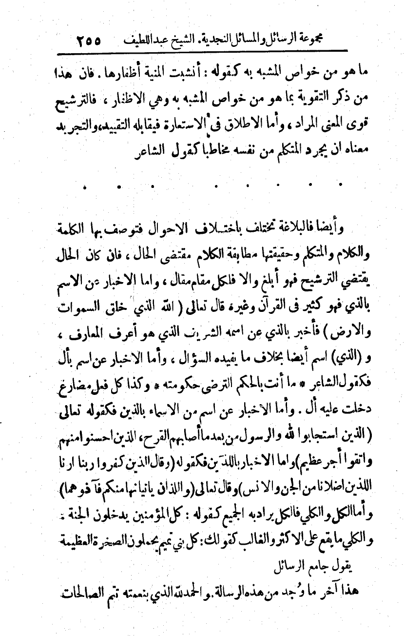 هذا آخر ما وجد من هذه الرسالة، والحمد لله الذي بنعمته تتم الصالحات.