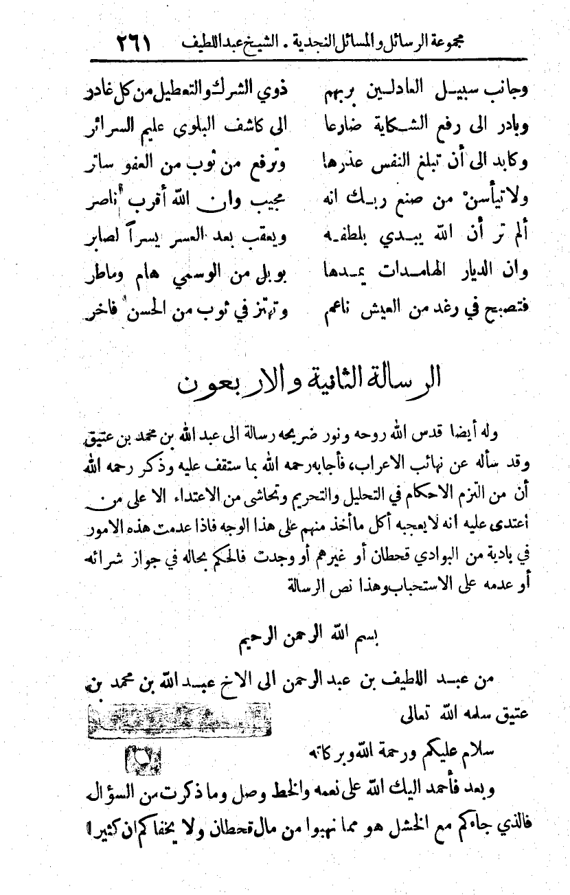 من عبد اللطيف بن عبد الرحمن إلى الأخ عبد الله بن محمد بن عتيق -سلمه الله تعالى-
