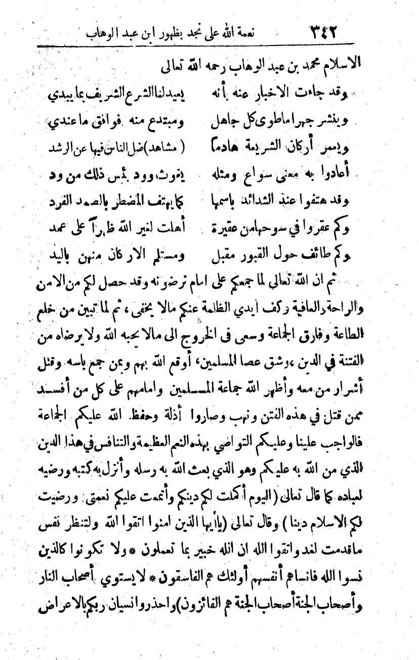 الإسلام محمد بن عبد الوهاب -رحمه الله تعالى-: