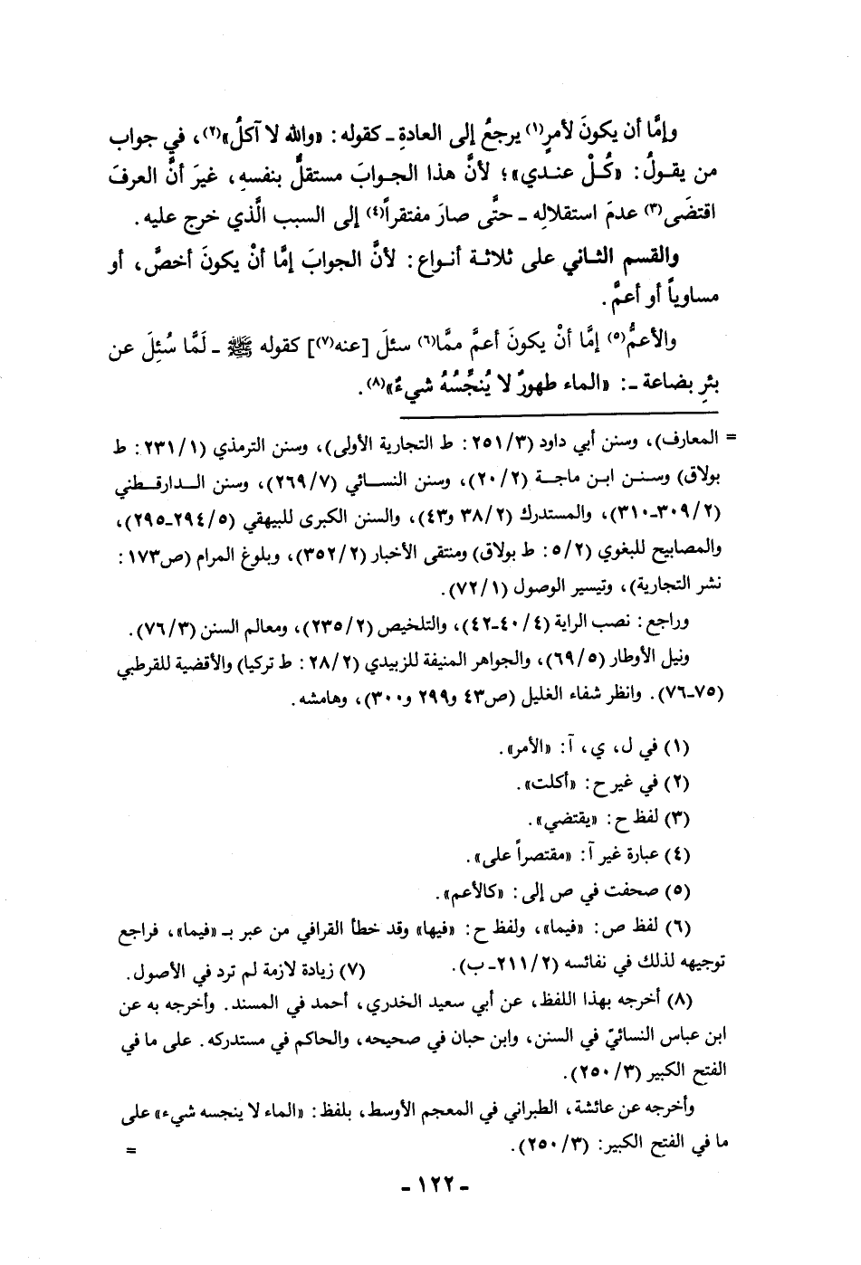 مساويا أو أعم والأعم إما ان يكون أعم مما سئل عنه كقوله ص لما سئل عن بئربضاعة الماء طهور لا ينجسه شئ