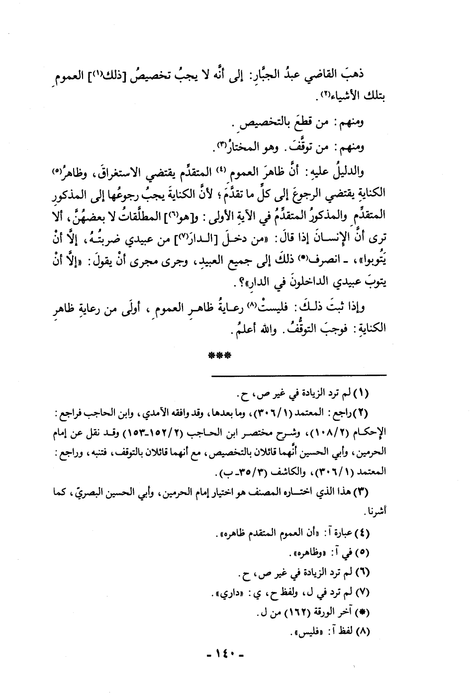 ذهب القاضي عبد الجبار إلى أنه لا يجب تخصيص ذلك العموم بتلك الأشياء ومنهم من قطع بالتخصيص ومنهم من توقف وهو المختار والدليل عليه أن ظاهر العموم المتقدم يقتضي الاستغراق وظاهر الكناية يقتضي الرجوع إلى كل ما تقدم لأن الكناية يجب رجوعها إلى المذكور المتقدم والمذكور المتقدم في الآية الأولى وهو المطلقات لا بعضهن ألا ترى أن الإنسان إذا قال من دخل الدار من عبيدي ضربته إلا أن يتوبوا انصرف ذلك إلى جميع العبيد وجرى مجرى أن يقول إلا أن يتوب عبيدي الداخلون في الدار وإذا ثبت ذلك فليست رعاية ظاهر العموم أولى من رعاية ظاهر الكناية فوجب التوقف والله أعلم