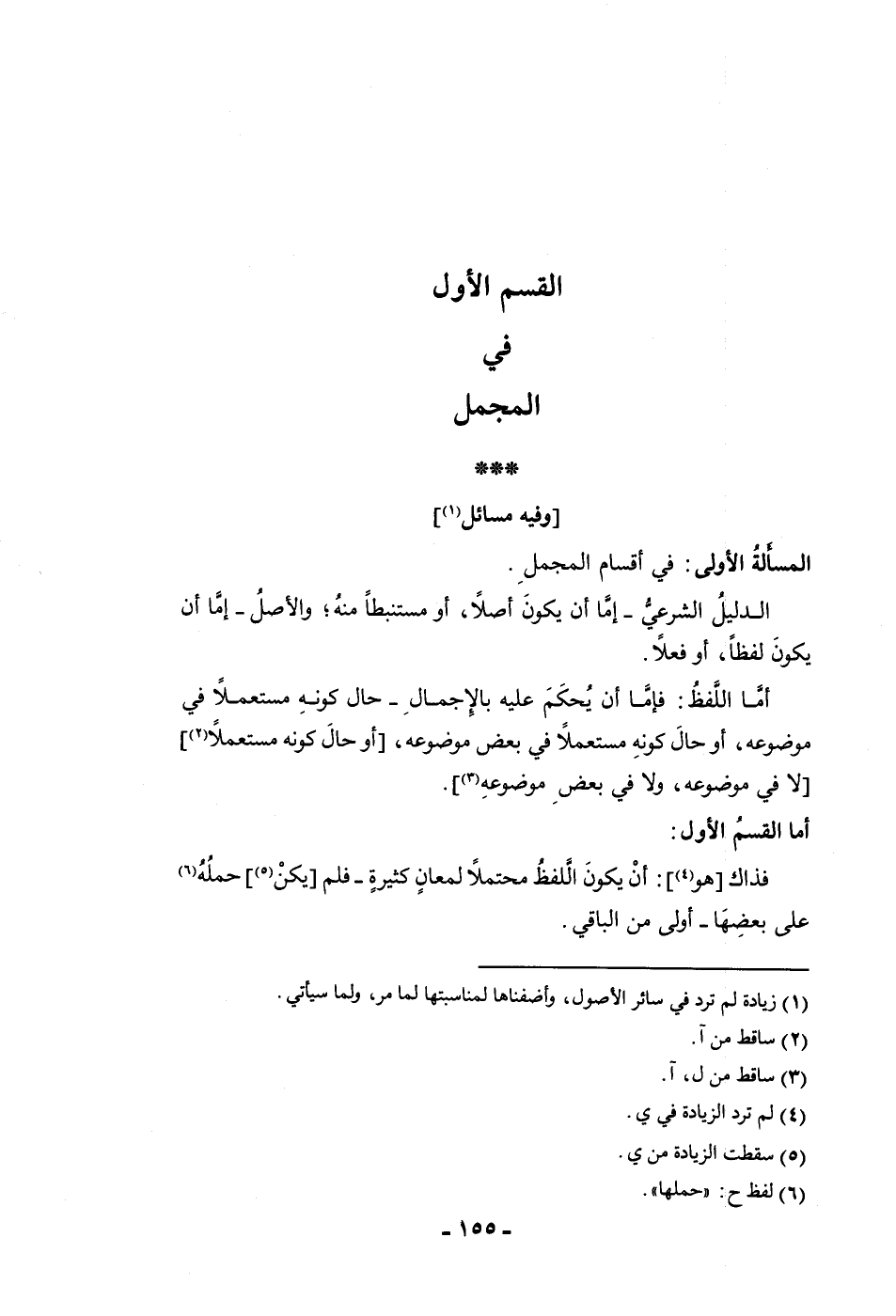 القسم الأول في المجمل وفيه مسائل المسألة الأولى في أقسام المجمل