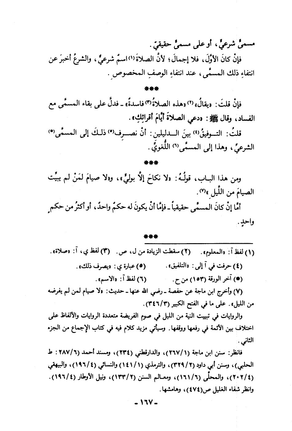 مسمى شرعي أو على مسمى حقيقي فإن كان الأول فلا إجمال لأن الصلاة اسم شرعي والشرع أخبر عن انتفاء ذلك المسمى عند انتفاء الوصف المخصوص فإن قلت يقال هذه الصلاة فاسدة فدل على بقاء المسمى مع الفساد وقال ص دعي الصلاة أيام أقرائك قلت التوفيق بين الدليلين أن نصرف ذلك إلى المسمى الشرعي وهذا إلى المسمى اللغوي ومن هذا الباب قوله لا نكاح إلا بولي ولا صيام لمن لم يبيت الصيام من الليل أما إن كان المسمى حقيقيا فإما أن يكون له حكم واحد أو أكثر من حكم واحد