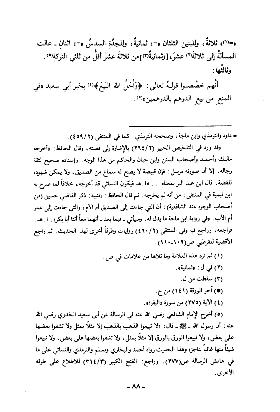 ثلاثة وللبنين الثلثان ثمانية وللجدة السدس اثنان عالت المسألة إلى ثلاثة عشر وثمانية من ثلاثة عشر أقل من ثلثي التركة وثالثها أنهم خصصوا قوله تعالى وأحل الله البيع بخبر أبي سعيد في المنع من المنع من بيع الدرهم بالدرهمين