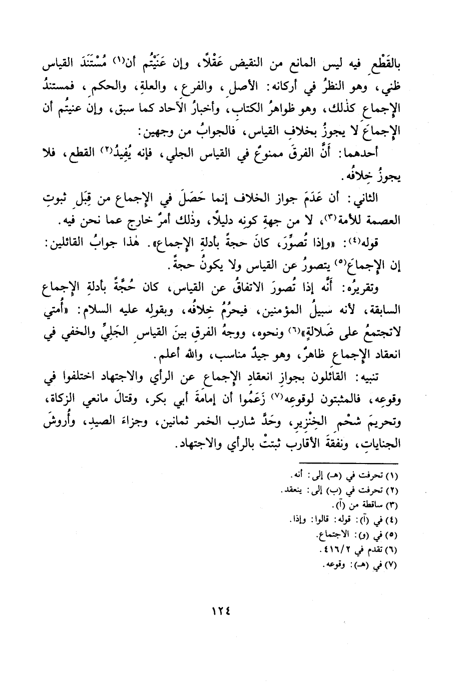 بِالْقَطْعِ فِيهِ لَيْسَ الْمَانِعَ مِنَ النَّقِيضِ عَقْلًا، وَإِنْ عَنَيْتُمْ أَنَّ مُسْتَنَدَ الْقِيَاسِ ظَنِّيٌّ، وَهُوَ النَّظَرُ فِي أَرْكَانِهِ: الْأَصْلِ، وَالْفَرْعِ، وَالْعِلَّةِ، وَالْحُكْمِ، فَمُسْتَنَدُ الْإِجْمَاعِ كَذَلِكَ، وَهُوَ ظَوَاهِرُ الْكِتَابِ، وَأَخْبَارُ الْآحَادِ كَمَا سَبَقَ، وَإِنْ عَنَيْتُمْ أَنَّ الْإِجْمَاعَ لَا يَجُوزُ بِخِلَافِ الْقِيَاسِ، فَالْجَوَابُ مِنْ وَجْهَيْنِ: