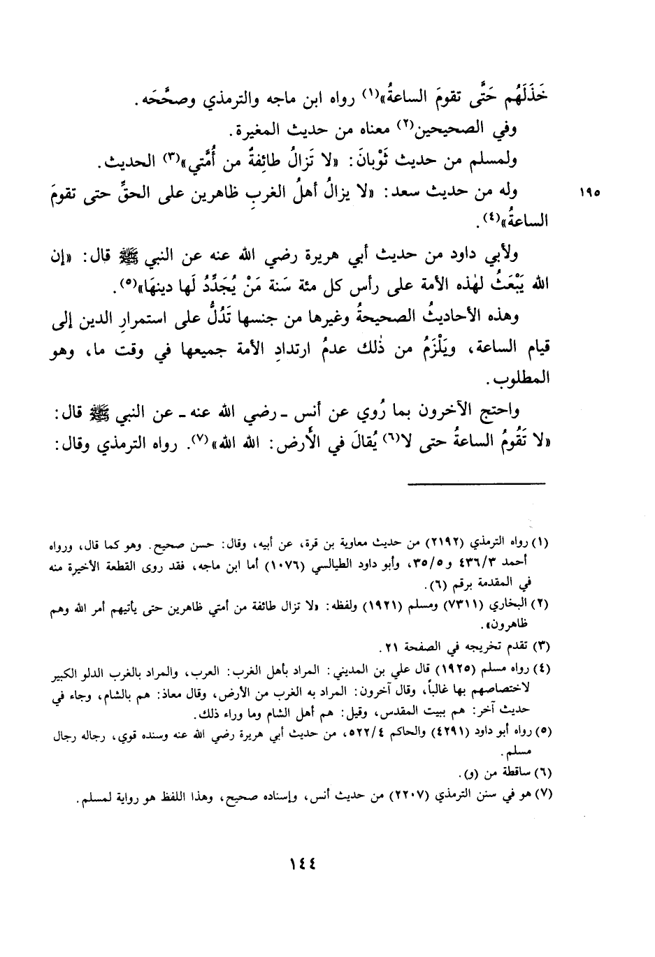 وَهَذِهِ الْأَحَادِيثُ الصَّحِيحَةُ وَغَيْرُهَا مِنْ جِنْسِهَا تَدُلُّ عَلَى اسْتِمْرَارِ الدِّينِ إِلَى قِيَامِ السَّاعَةِ، وَيَلْزَمُ مِنْ ذَلِكَ عَدَمُ ارْتِدَادِ الْأُمَّةِ جَمِيعِهَا فِي وَقْتٍ مَا، وَهُوَ الْمَطْلُوبُ.