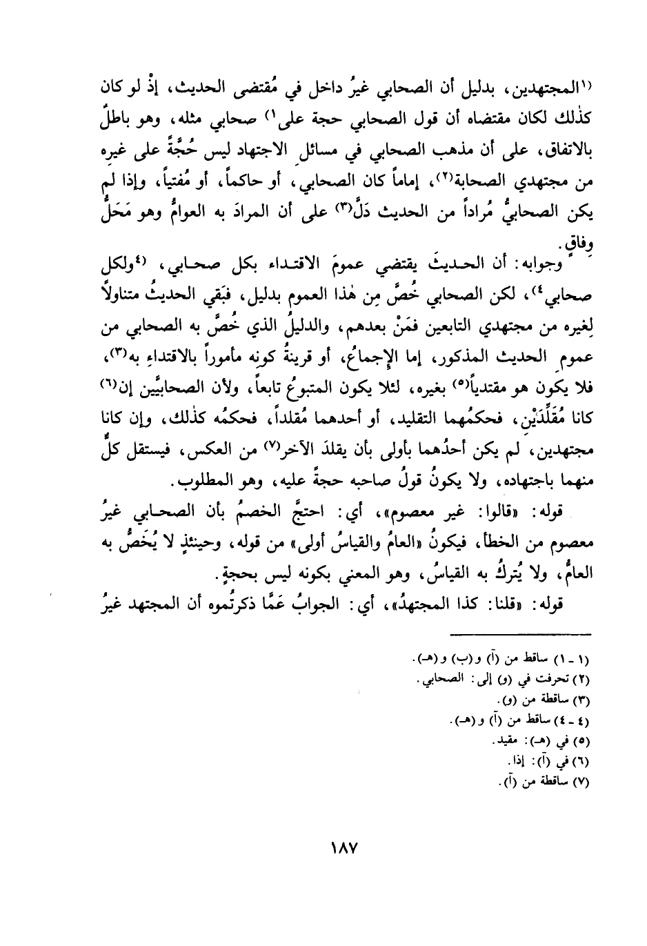 الْمُجْتَهِدِينَ، بِدَلِيلِ أَنَّ الصَّحَابِيَّ غَيْرُ دَاخِلٍ فِي مُقْتَضَى الْحَدِيثِ، إِذْ لَوْ كَانَ كَذَلِكَ لَكَانَ مُقْتَضَاهُ أَنَّ قَوْلَ الصَّحَابِيِّ حُجَّةٌ عَلَى صَحَابِيٍّ مِثْلِهِ، وَهُوَ بَاطِلٌ بِالِاتِّفَاقِ، عَلَى أَنَّ مَذْهَبَ الصَّحَابِيِّ فِي مَسَائِلِ الِاجْتِهَادِ لَيْسَ حُجَّةً عَلَى غَيْرِهِ مِنْ مُجْتَهِدِي الصَّحَابَةِ، إِمَامًا كَانَ الصَّحَابِيُّ، أَوْ حَاكِمًا، أَوْ مُفْتِيًا، وَإِذَا لَمْ يَكُنِ الصَّحَابِيُّ مُرَادًا مِنَ الْحَدِيثِ دَلَّ عَلَى أَنَّ الْمُرَادَ بِهِ الْعَوَامُّ وَهُوَ مَحَلُّ وِفَاقٍ.