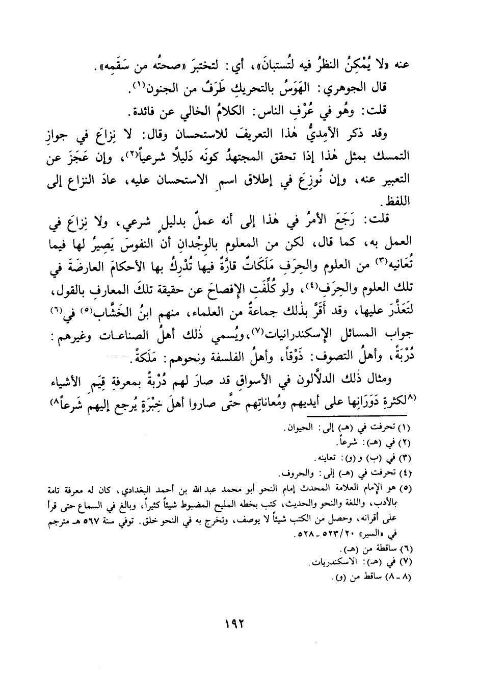 وَقَدْ ذَكَرَ الْآمِدِيُّ هَذَا التَّعْرِيفَ لِلِاسْتِحْسَانِ وَقَالَ: لَا نِزَاعَ فِي جَوَازِ التَّمَسُّكِ بِمِثْلِ هَذَا إِذَا تَحَقَّقَ الْمُجْتَهِدُ كَوْنَهُ دَلِيلًا شَرْعِيًّا، وَإِنْ عَجَزَ عَنِ التَّعْبِيرِ عَنْهُ، وَإِنْ نُوزِعَ فِي إِطْلَاقِ اسْمِ الِاسْتِحْسَانِ عَلَيْهِ، عَادَ النِّزَاعُ إِلَى اللَّفْظِ.