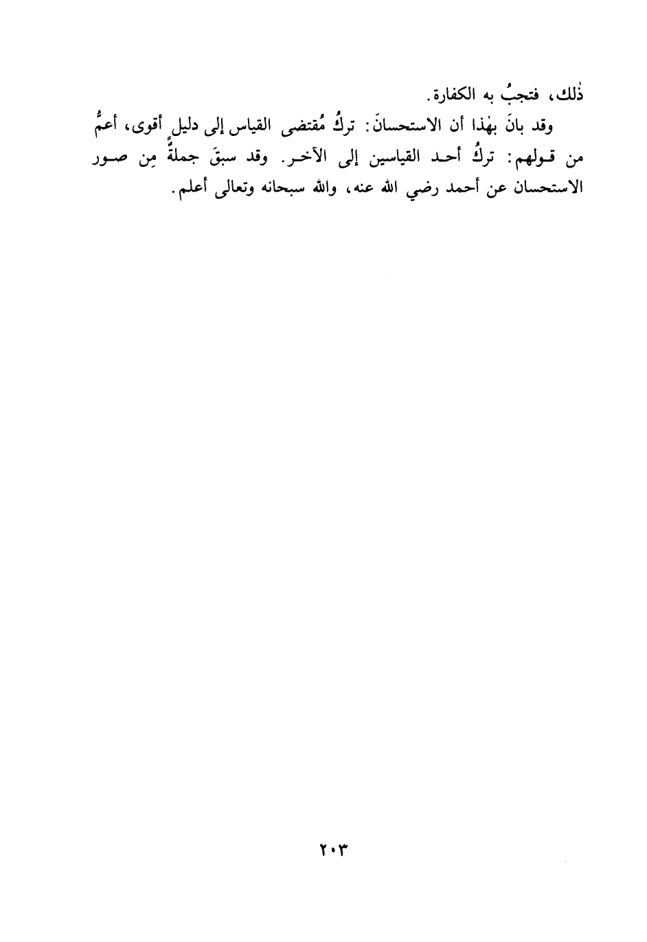 وَقَدْ بَانَ بِهَذَا أَنَّ الِاسْتِحْسَانَ: تَرْكُ مُقْتَضَى الْقِيَاسِ إِلَى دَلِيلٍ أَقْوَى، أَعَمُّ مِنْ قَوْلِهِمْ: تَرْكُ أَحَدِ الْقِيَاسَيْنِ إِلَى الْآخَرِ. وَقَدْ سَبَقَ جُمْلَةٌ مِنْ صُوَرِ الِاسْتِحْسَانِ عَنْ أَحْمَدَ - رَضِيَ اللَّهُ عَنْهُ، وَاللَّهُ - سُبْحَانَهُ وَتَعَالَى - أَعْلَمُ.