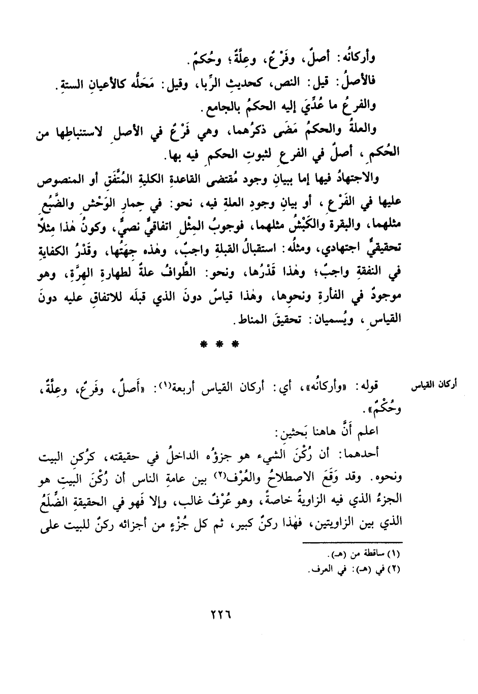 وَأَرْكَانُهُ: أَصْلٌ، وَفَرْعٌ، وَعِلَّةٌ، وَحُكْمٌ.