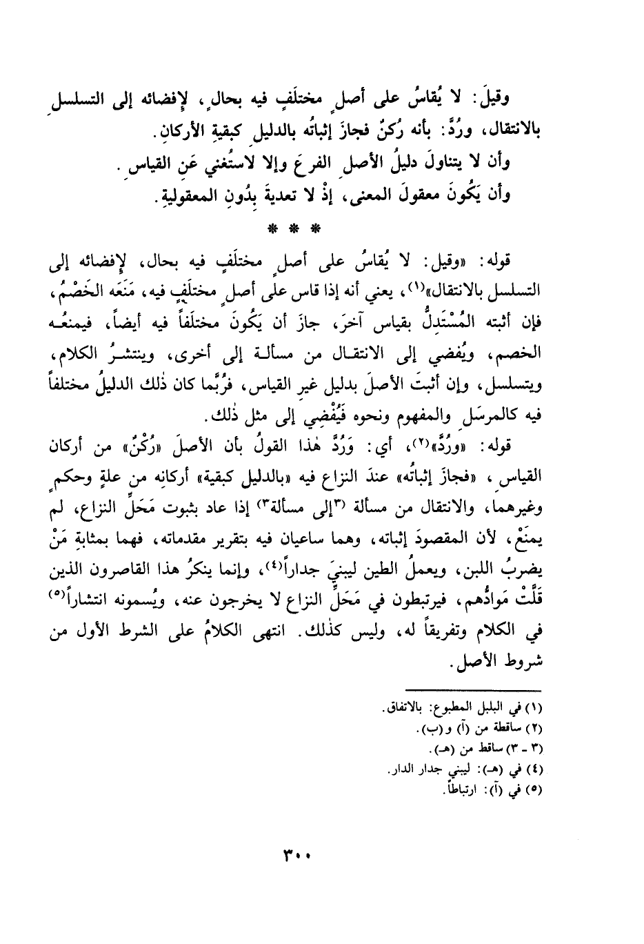 قَوْلُهُ: «وَرُدَّ» ، أَيْ: وَرُدَّ هَذَا الْقَوْلُ بِأَنَّ الْأَصْلَ «رُكْنٌ» مِنْ أَرْكَانِ الْقِيَاسِ، «فَجَازَ إِثْبَاتُهُ» عِنْدَ النِّزَاعِ فِيهِ «بِالدَّلِيلِ كَبَقِيَّةِ» أَرْكَانِهِ مِنْ عِلَّةٍ وَحُكْمٍ وَغَيْرِهِمَا، وَالِانْتِقَالُ مِنْ مَسْأَلَةٍ إِلَى مَسْأَلَةٍ إِذَا عَادَ بِثُبُوتِ مَحَلِّ النِّزَاعِ، لَمْ يُمْنَعْ؛ لِأَنَّ الْمَقْصُودَ إِثْبَاتُهُ، وَهُمَا سَاعِيَانِ فِيهِ بِتَقْرِيرِ مُقَدِّمَاتِهِ، فَهُمَا بِمَثَابَةِ مَنْ يَضْرِبُ اللَّبِنَ، وَيَعْمَلُ الطِّينَ لِيَبْنِيَ جِدَارًا، وَإِنَّمَا يُنْكِرُ هَذَا الْقَاصِرُونَ الَّذِينَ قَلَّتْ مَوَادُّهُمْ، فَيَرْتَبِطُونَ فِي مَحَلِّ النِّزَاعِ لَا يَخْرُجُونَ عَنْهُ، وَيُسَمُّونَهُ انْتِشَارًا فِي الْكَلَامِ وَتَفْرِيقًا لَهُ، وَلَيْسَ كَذَلِكَ. انْتَهَى الْكَلَامُ عَلَى الشَّرْطِ الْأَوَّلِ مِنْ شُرُوطِ الْأَصْلِ.
