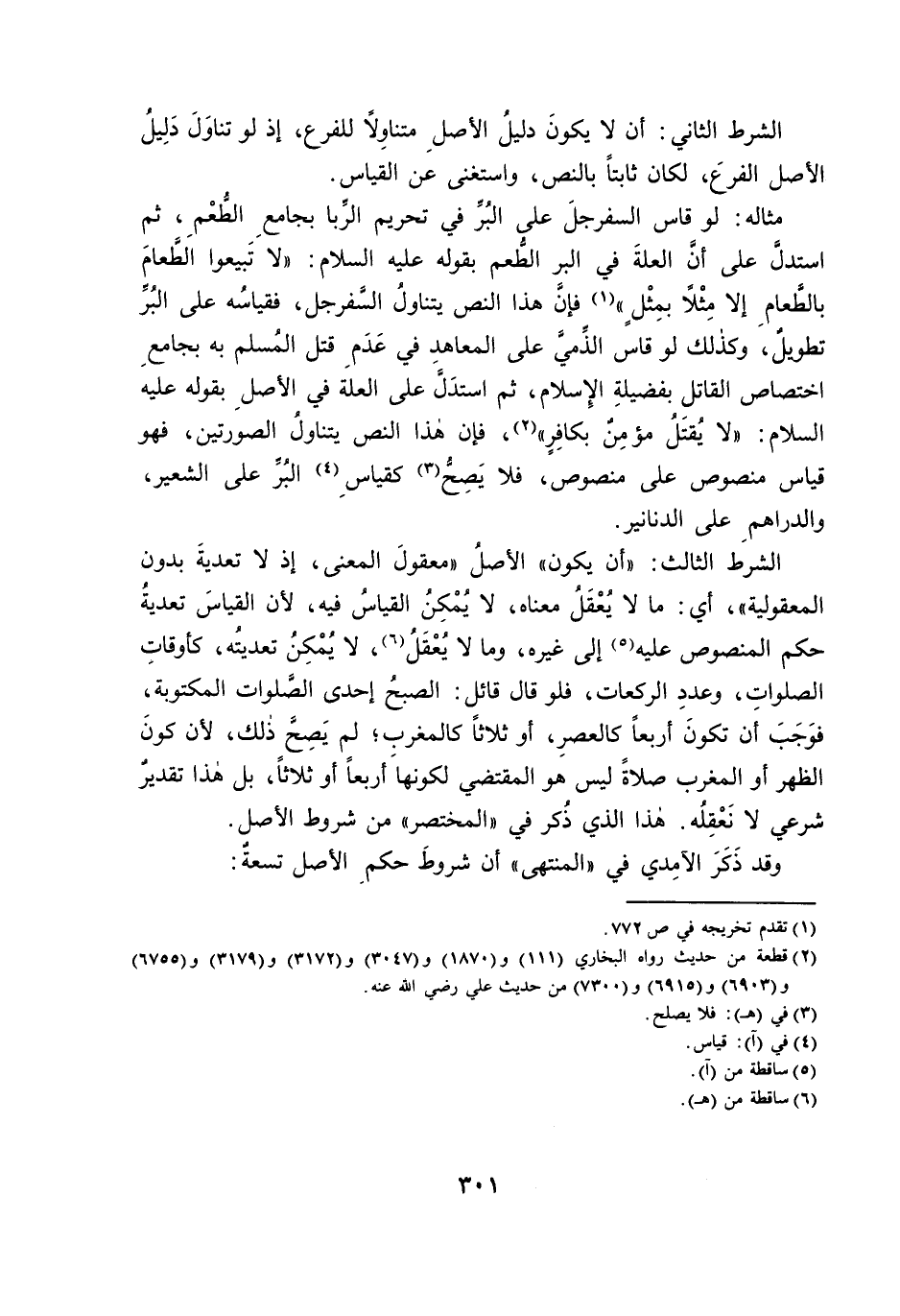 وَقَدْ ذَكَرَ الْآمِدِيُّ فِي «الْمُنْتَهَى» أَنَّ شُرُوطَ حُكْمِ الْأَصْلِ تِسْعَةٌ: