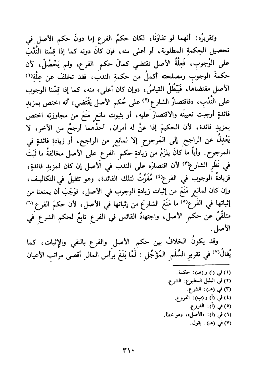 وَتَقْرِيرُهُ: أَنَّهُمَا لَوْ تَفَاوَتَا، لَكَانَ حُكْمُ الْفَرْعِ إِمَّا دُونَ حُكْمِ الْأَصْلِ فِي تَحْصِيلِ الْحِكْمَةِ الْمَطْلُوبَةِ، أَوْ أَعْلَى مِنْهُ، فَإِنْ كَانَ دُونَهُ كَمَا إِذَا قِسْنَا النَّدْبَ عَلَى الْوُجُوبِ، فَعِلَّةُ الْأَصْلِ تَقْتَضِي كَمَالَ حُكْمِ الْفَرْعِ، وَلَمْ يَحْصُلْ؛ لِأَنَّ حِكْمَةَ الْوُجُوبِ وَمَصْلَحَتَهُ أَكْمَلُ مِنْ حِكْمَةِ النَّدْبِ، فَقَدْ تَخَلَّفَ عَنْ عِلَّةِ الْأَصْلِ مُقْتَضَاهَا، فَيَبْطُلُ الْقِيَاسُ، " وَإِنْ كَانَ أَعْلَى " مِنْهُ، كَمَا إِذَا قِسْنَا الْوُجُوبَ عَلَى النَّدْبِ، " فَاقْتِصَارُ الشَّارِعِ عَلَى حُكْمِ الْأَصْلِ يَقْتَضِي " أَنَّهُ اخْتُصَّ بِمَزِيدِ فَائِدَةٍ أَوْجَبَتْ تَعْيِينَهُ وَالِاقْتِصَارَ عَلَيْهِ، أَوْ بِثُبُوتِ مَانِعٍ مَنَعَ مِنْ مُجَاوَزَتِهِ اخْتُصَّ بِمَزِيدِ فَائِدَةٍ؛ لِأَنَّ الْحَكِيمَ إِذَا عَنَّ لَهُ أَمْرَانِ، أَحَدُهُمَا أَرْجَحُ مِنَ الْآخَرِ، لَا يَعْدِلُ عَنِ الرَّاجِحِ إِلَى الْمَرْجُوحِ إِلَّا لِمَانِعٍ مِنَ الرَّاجِحِ، أَوْ زِيَادَةِ فَائِدَةٍ فِي الْمَرْجُوحِ. وَأَيًّا مَا كَانَ يَلْزَمُ مِنْ زِيَادَةِ حُكْمِ الْفَرْعِ عَلَى الْأَصْلِ مُخَالَفَةُ مَا ثَبَتَ فِي نَظَرِ الشَّارِعِ لِأَنَّ اقْتِصَارَهُ عَلَى النَّدْبِ فِي الْأَصْلِ إِنْ كَانَ لِمَزِيدِ فَائِدَةٍ، فَزِيَادَةُ الْوُجُوبِ فِي الْفَرْعِ مُفَوِّتٌ لِتِلْكَ الْفَائِدَةِ، وَهُوَ تَثْقِيلٌ فِي التَّكَالِيفِ، وَإِنْ كَانَ لِمَانِعٍ مَنَعَ مِنْ إِثْبَاتِ زِيَادَةِ الْوُجُوبِ فِي الْأَصْلِ، فَوَجَبَ أَنْ يَمْنَعَنَا مِنْ إِثْبَاتِهَا فِي الْفَرْعِ مَا مَنَعَ الشَّارِعَ مِنْ إِثْبَاتِهَا فِي الْأَصْلِ؛ لِأَنَّ حُكْمَ الْفَرْعِ مُتَلَقًّى عَنْ حُكْمِ الْأَصْلِ، وَاجْتِهَادُ الْقَائِسِ فِي الْفَرْعِ تَابِعٌ لِحُكْمِ الشَّرْعِ فِي الْأَصْلِ.